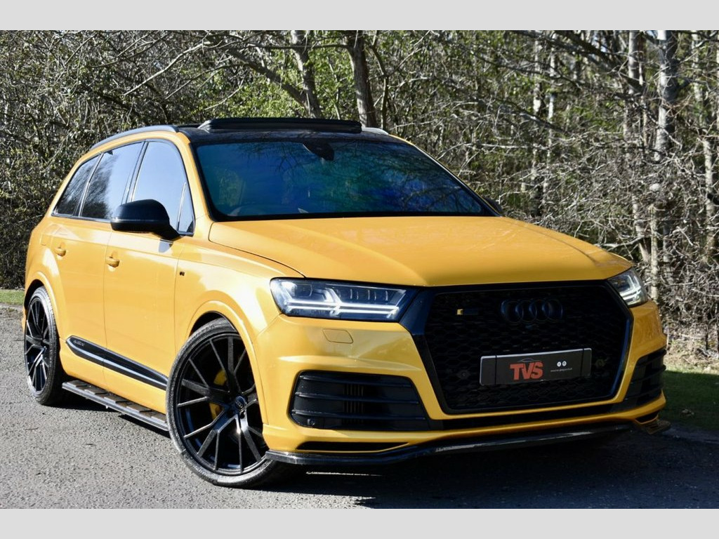 2017/66 Audi SQ7 4.0 V8 TDI Quattro SUV - Automatic - Dandelion Yellow Pearl wrap with full black leather interior - 69k miles - 4 former keepers - 2 remote keys - Audi digital service history and independent Audi specialist service history - just serviced for sale by Audi specialist with Audi DSR updated - fresh 12 months MOT with no advisories - Platinum warranty - full 12 months AA roadside assistance also included! Full Pearl Yellow body wrap (black car originally) - RSQ7 front grill - Maxton front splitter - Sun Protection Glazing all round - Apple Car Play - Bluetooth audio and telephony - Air Suspension - Dual Zone Climate control! Pan Roof! Chameleon Windscreen! Bose Audio! Rear View Camera! Virtual Cockpit! Audi Sidesteps! RSQ7 grill! Continental tyres! 20in Alloy Wheels - 5-Arm Off Road Desig, 7 Seats, AMI - Audi Music Interface, Active Sound Exhaust System, Adaptive S Air Suspension, Airbags - Front Side with Curtain, All Weather LED Headlights, Aluminium Roof Rails, Aluminium Scuff Plates with SQ7 Logo, Anti Theft Locking Wheel Bolts, Anti-Theft Alarm, Audi Connect - 3 Month Trial, Audi Connect Infotainment Embedded SIM, Audi Connect Safety and Service - e-call, Audi Drive Select, Audi Hill Hold Assist, Audi Parking System Plus, Audi Pre-Sense City, Audi Smartphone Interface, Audi Sound System, Audi Virtual Cockpit, Auto-Dimming Rear-View Mirror, Bluetooth Interface, Brake Calipers - Black with S Logo, Child Locks, Chrome Package, Cloth