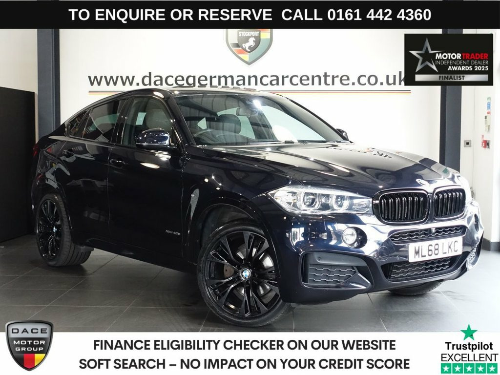 BMW X6 40d 3.0 M Sport Edition in 'Carbon Black' comes with SERVICE HISTORY, Sunroof, Heated front and rear seats, Heads-Up display, Pro navigation, Reverse camera, Full black leather interior, 21" Alloys, Electric driver seat adjustment with memory function, Front / rear parking sensors, Heated multi function steering wheel, Privacy glass, DAB Digital radio, Dual climate control, Air conditioning, Electric windows, Electric folding mirrors. ** HPI CLEAR ** •••••••••• F I N A N C E • A V A I L A B L E •••••••••• - *** NOT SURE YOU'RE ELIGIBLE FOR CAR FINANCE? *** CHECK TODAY USING OUR FREE CAR FINANCE CHECKER ON OUR WEBSITE.*** Dace Motor Group have a dedicated team of finance experts waiting to help with your enquiry. Over the past 30 years we have forged relationships with the country's largest and best finance houses. We are specialists in Hire Purchase (HP), Personal Contract Purchase (PCP) as well as assisting those with poor credit or previous credit problems - •••••••••• A B O U T • U S •••••••••• - At Dace German Car Centre, we are very proud to have been named the first Trading Standards Approved Car Retailer, with process and procedures developed with and applauded by them. We do recommend that customers RESERVE their choice of vehicle prior to m 12V Power Sockets, 20GB HDD Memory, 21in Alloy Wheels - M Double Spoke Style, 40-20-40 Split Folding Rear Seats, Access to BMW Connected Plus for 12 Mont, Adaptive M Suspension, Air Breather - Black High Gloss, Air Conditioning - Automatic with Two-Zo, Airbags, Alarm System - Thatcham 1 with Remote Co, All Round Anti-Corrosion System with Par, Ambient Lighting - Colour Selection, Armrest - Front with Storage Compartment, Automatic Start-Stop Button, Automatically Dimming Rear View Mirror, Auxiliary Input Point for Auxiliary Play, Bluetooth Hands Free with USB Audio Inte, BMW ConnectedDrive Online Services, BMW ConnectedDrive Services, BMW Emergency Call, BMW Professional Radio with Single CD