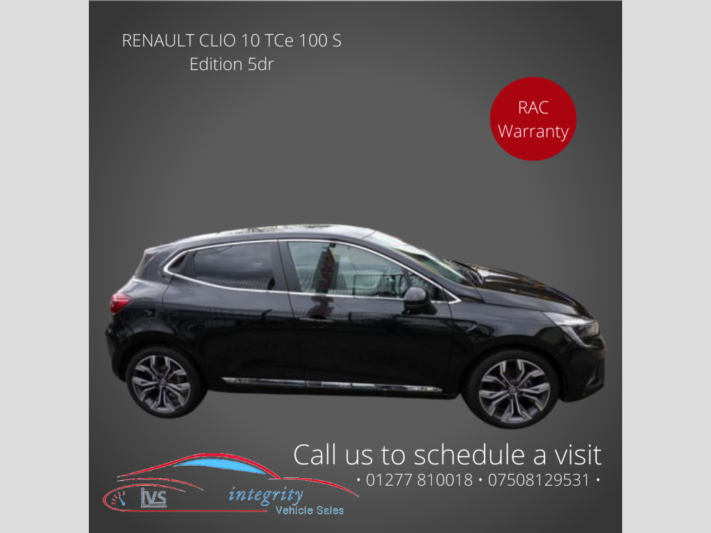 CALL FOR FINANCE-01277810018. Automatic emergency braking system, ESC - Electronic Stability Control + traction control, Hill start assist, Electric adjustable/heated/folding door mirrors, Drivers one touch window with anti-pinch feature, Electric front windows, Electric rear windows, 3 point seatbelts on all rear seats, Curtain airbags, Distance warning alert, Driver and passenger front and side airbag deactivation, Driver/Front Passenger airbags, Front side airbags(head+thorax), Height adjustable driver's seatbelt, Seatbelt warning, Tyre pressure warning, Anti-drill door locks, Child lock control of rear doors and windows, Deadlocking system, Hands free Renault card, Locking fuel filler cap, RAID (Renault Anti-Intruder Device) with automatic door locking, Remote central locking, Thatcham Category 2 engine immobiliser, Anti-lock Brake System + Electronic Brakeforce Distribution + Brake assist, Extra tinted glass on rear windows + tailgate, Rear wiper, Variable front intermittent wipers, Black headlamp surrounds, Body colour door handles, Body coloured bumpers, Body coloured rear spoiler, Chrome boot lid finisher, Chrome front grille strips, Chrome insert on lower side doors with Clio embossing, Exterior rear hidden door handles, Shark fin antenna, Solid paint, Automatic headlights + automatic windscreen wipers, Full LED front and rear headlamps integrating daytime running lights at the front and rear, LED front fog lights, Rear fog lights, 3 rear height adjustable headrests, 60/40 split rear seats, Driver's seat height adjustment, Height adjustable front headrests, Isofix system on outer rear seats, System for Restraint and Protection SRP-front seats, 12V Accessory socket, 3D Fabric velvet upholstery, Front cupholders, Front door storage bin, Glovebox, Height/reach adjust steering wheel, Leather steering wheel, Multi function steering wheel, Vision grey interior detail includes light grey on doors, lower part of dash and gear stick, Air recirculation control, Automatic climate control, Pollen filter, Push button starter, Cruise control + speed limiter, Eco mode, Lane departure warning system, Lane keep assist, Over speed prevention, Rear parking sensors, Traffic sign recognition, Variable assistance electric Power Assisted Steering, 7'' TFT colour instrumental