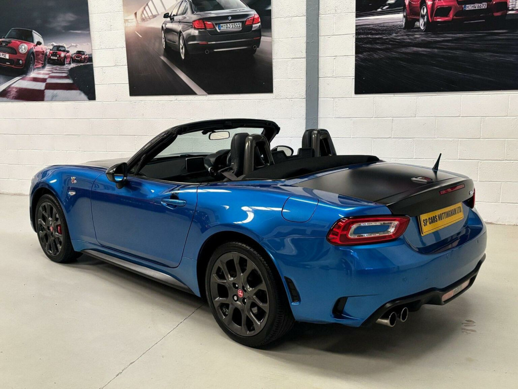 SP Cars are thrilled to offer this 2018/68 Abarth 124 Spider 1.4 MultiAir Auto 2dr Convertible, presented in Pearlescent Dynamic Blue. Just One previous owner from new, Only 44,000 miles with total service history, 7 stamps at 6k, 11k, 15k, 19k, 32k, 38k and 40k. Cambelt and waterpump replaced at 40,841 miles on 11th April 2025. Hpi Clear. MOT Until 30th December 2026. EURO 6 and ULEZ Compliant. All part exchanges considered. Check out our 5* reviews and a full walkaround video on our website www.spcars.net. Please contact us directly for any further information or to reserve any of our vehicles. We are FCA regulated and can offer competitive finance packages to suit your needs. We have the V5, complete handbook pack, 2 keys, locking wheel nut, tool kit and fully stamped service book. Viewing is by appointment only please. Please ring before travelling to avoid disappointment. The Great spec includes, Satellite Navigation, Visibility Packs, Full Black Leather With Embossed Abarth Logo, Heated Front Seats, Abarth Record Monza Exhaust System, Keyless Go Push Button Start, 17in Alloy Wheels - Corsa, Sport Mode, Aerodynamic Abarth Kit, Red Brembo Calipers, Sport Suspension Abarth by Bilstein, Aha by Harman and Stitcher Internet Radio Apps Internet Wi-Fi, Digital Audio Broadcast - DAB, Bluetooth, Steering Wheel Mounted Paddles, Cruise Control, Air Conditioning, ABS - Anti-Lock Braking System, Alcantara Wrapped Instrument Cluster Hood, 7in Touchscreen with Multimedia Control, Active Head Restraints, Adjustable Drivers and Passengers Seats, Abarth Mechanical Limited Slip Differential, A-Pillar and Roll Bar in Forgiato Grey, Aluminium Racing Pedals, Black Convertible Roof with Acoustic Headliner, Child Seat Anchor System Latch Ready, ESP - Electronic Stability Programme, Performance Steering Wheel, Electric Power Steering, Front Fog Lights, LED Rear Lights, Occupant Detection System, Passenger Airbag On-Off Switch, Power Heated Mirrors, Steering Wheel - Audio Controls, Variable Intermittent Windshield Wipers, Floor Mats - Front, Premium Security Alarm