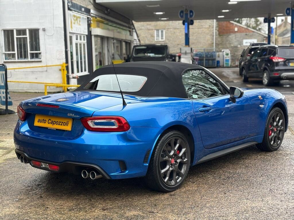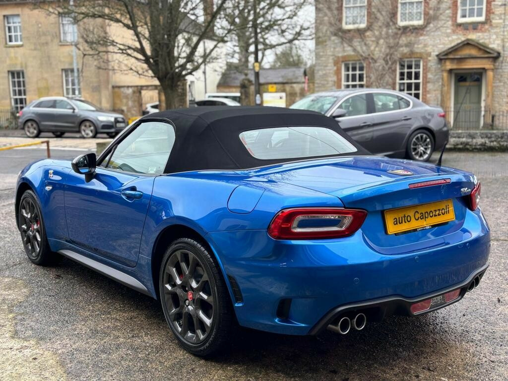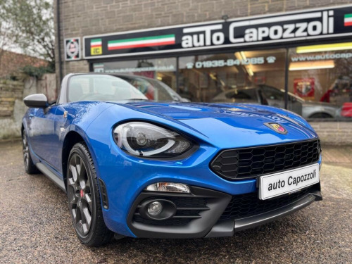 STUNNING LOW MILEAGE ONE OWNER 6 SPEED MANUAL 124 SPIDER 170bhp, VETTURA No : 294, ONLY 25K MILES WITH FULL SERVICE HISTORY, FINISHED IN BEAUTIFUL ISOLA D'ELBA 1974 BLUE WITH BLACK ABARTH EMBOSSED LEATHER TRIM, VISIBILITY PACK WITH AUTO LIGHTS/WIPERS, XENON HEADLIGHTS WITH HEADLIGHT WASH, REAR PARKING SENSORS, 7'' TOUCHSCREEN DAB RADIO WITH BOSE SOUND SYSTEM/ MULTIMEDIA CONTROL, FORGIATO GREY COLOUR PACK (FORGIATO GREY MIRROR CAPS & FRONT DAM ), HEATED SEATS, 17'' GRAPHITE CORSA DESIGN ALLOY WHEELS WITH RED BREMBO BRAKE CALIPERS, MULTI FUNCTION BLACK SPORTS LEATHER STEERING WHEEL WITH RED STITCHING, CRUISE CONTROL, KEYLESS GO PUSH BUTTON START WITH REMOTE CENTRAL LOCKING, ABARTH RECORD MONZA EXHAUST SYSTEM, Air Conditioning, On Board Computer, Electric Windows, Aluminium Sport Pedals, Drive Mode Selector with Sport Mode, ABS Brakes, Traction Control System, Sports Suspension Abarth by Blistein, Abarth Mechanical Limited Slip Differential, 6 Speed Gearbox with Short and Direct Gear Lever, Front Fog Lights, Full service history, 2 seats, ISOLA D'ELBA 1974 BLUE with BLACK LEATHER, 1 owner, Upgrades - Bose Sound System, Colour Pack - Forgiato Grey, Leather - Black, Visibility Pack, AUTO CAPOZZOLI ILCHESTER, Est Since 1959, Alfa Romeo/Abarth/Fiat Specialists, £18,995, usb and 1 aux ports, 7in touchscreen with multimedia control, 17in alloy wheels - corsa, abarth record monza exhaust system, aerodynamic abarth kit, black convertible roof with acoustic headliner, black side skirts, power heated mirrors, soft top with inner liner soundproofing, a-pillar and roll bar in forgiato grey, esp - electronic stability programme, immobiliser, premium security alarm, remote control key fob, abarth mechanical limited slip differential, cruise control, sport mode, sport suspension abarth by bilstein, trip computer, tyre pressure monitor system, air conditioning, alcantara wrapped instrument cluster hood, alcantara wrapped instrument panel bezel, aluminium racing pedals, dimpled leather bound gear knob, floor mats - front, heated front seats, keyless go push button start, matt black instrument panel bezel, performance steering wheel, sport instrument cluster, daytime running lights, front fog lights, 17'' Alloys