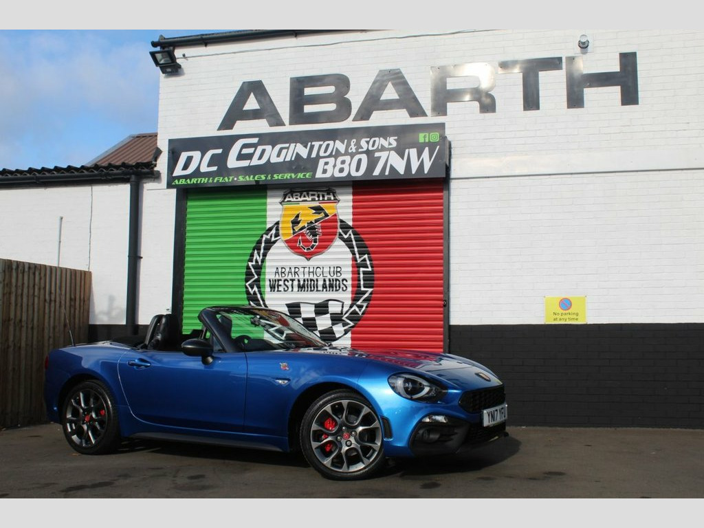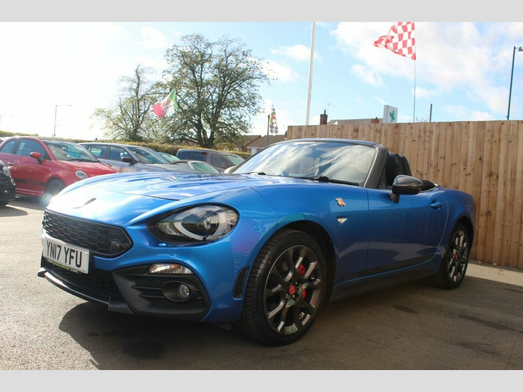 A great opportunity to To Purchase An ABARTH 124 SPIDER With Visibility Pack,Bose Sound System (Exluding Heritage Pack) Finished In FINISHED IN ISOLA D'ELBA,17" Alloy Wheels,Record Monza Exhaust,Sport mode,Supplied with 2 x Keys And Fully Prepared By Our Own Workshop Prior To Handover,By THE LARGEST INDEPENDENT ABARTH SPECIALIST IN THE UK. 12V Power Outlet, 17in Alloy Wheels - Corsa, 2 USB and 1 AUX Ports, 7in Touchscreen with Multimedia Control, A-Pillar and Roll Bar in Forgiato Grey, Abarth Mechanical Limited Slip Different, Abarth Record Monza Exhaust System, ABS - Anti-Lock Braking System, Active Head Restraints, Active Pedestrian Protection, Adjustable Drivers and Passengers Seats, Aerodynamic Abarth Kit, Aha by Harman and Stitcher Internet Radi, Air Conditioning, Airbags - Driver, Airbags - Front Side, Airbags - Passenger, Alcantara Wrapped Instrument Cluster Hoo, Alcantara Wrapped Instrument Panel Bezel, Aluminium Racing Pedals, Bi-Function Halogen Projector Headlights, Black Convertible Roof with Acoustic Hea, Black Si