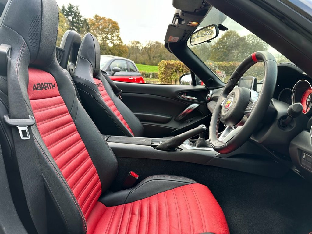 ' Navigation System, 12V Power Outlet, 17in Alloy Wheels - Corsa, 2 USB and 1 AUX Ports, 7in Touchscreen with Multimedia Control, A-Pillar and Roll Bar in Forgiato Grey, ABS - Anti-Lock Braking System, Abarth Mechanical Limited Slip Different, Abarth Record Monza Exhaust System, Active Head Restraints, Active Pedestrian Protection, Adjustable Drivers and Passengers Seats, Aerodynamic Abarth Kit, Aha by Harman and Stitcher Internet Radi, Air Conditioning, Airbags - Driver, Airbags - Front Side, Airbags - Passenger, Alcantara Wrapped Instrument Cluster Hoo, Alcantara Wrapped Instrument Panel Bezel, Aluminium Racing Pedals, Bi-Function Halogen Projector Headlights, Black Convertible Roof with Aco