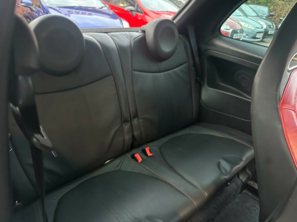 This 2011 Abarth 500 T Jet presents a compelling proposition with its remarkably low mileage of just 71,000 miles for a vehicle of its age. Powered by a spirited 1.4 litre petrol engine, this model offers an engaging driving experience. It comes equipped with desirable features such as automatic climate control to ensure comfort in all conditions, and eye catching red Abarth side stripes and mirrors that enhance its sporty aesthetic. The interior is further distinguished by an alloy gearknob and stylish 17 inch ten spoke diamond finish alloy wheels, all contributing to its distinctive character.The performance of this Abarth 500 T Jet is a key highlight, with its ability to accelerate from 0 to 62 miles per hour in a brisk 7.9 seconds. This swift acceleration demonstrates its capability and sets it apart from many other vehicles in its class. Combined with its compact size and agile handling, this Abarth 500 T Jet is designed for those who appreciate both performance and distinctive styling.. 16in Alloy Wheels, ABS - Anti-Lock Braking System, Air Conditioning, Airbags - Curtain, Airbags - Driver, Airbags - Drivers Knee, Airbags - Front Side and Window, Airbags - Passenger, Blue&Me - Bluetooth System with Steering Wheel Mounted Controls and USB Port, Body colour door mirrors, Central Locking - Remote, Dark Tinted Rear Windows, Door Mirrors - Body Coloured, EBD - Electronic Brakeforce Distribution, ESP including ASR-MSR-HBA and Hill Holder, Electric Windows - Front, Fix and Go Puncture Repair Kit, Folding Rear Seatbacks, Front Fog Lights, Leather gear knob, Pollen Filter, Power Steering - Dualdrive Electric, Radio-CD and MP3 Player, Seats - Drivers Height Adjustment, Seats - Passengers Memory Function, Smoking Kit, Steering Wheel - Height Adjustment, Steering Wheel - Leather/Sports with Height Adjustment, Automatic Climate Control, 17in Alloy Wheels - 10-Spoke Diamond Finish, Red Abarth Side Stripes and Mirrors, Red Abarth side stripe & mirrors, Leather- Sports- Red, 17in 5 petal Alloy Wheels, Alloy gearknob.