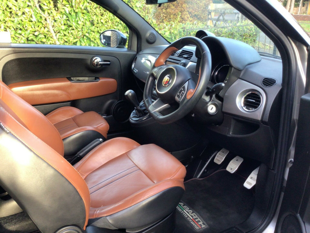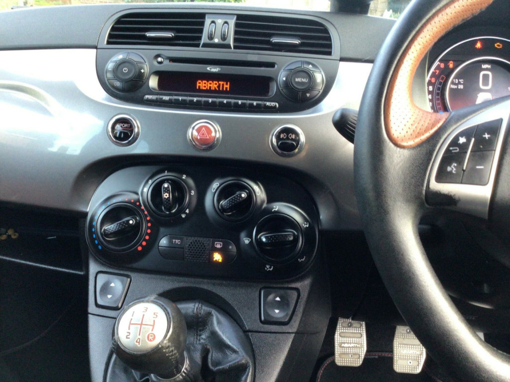 Great Opportunity To Buy This Fiat Abarth 500 Custom 3 Former Owners Last 2 Husband /Wife For The Past 6 Years , Grigio Grey & Black , Tan Leather Upholstery, 56000 Miles With Full Service History, Cambelt & Waterpump Recently Replaced , Super Condition Throughout . in alloy wheels - 10-spoke diamond finish, windows - dark tinted privacy glass, leather - natural, 16in alloy wheels, abs - anti-lock braking system, asr - anti-slip regulation, air conditioning, airbags - driver, airbags - drivers knee, airbags - passenger, airbags - side, airbags - window, blue&me - hands free system, central locking - remote, door mirrors - body coloured, door mirrors - electrically adjustable and heated, ebd - electronic brakeforce distribution, esp - electronic stability programme, electric windows - front, electrochromatic rear view mirror, fix and go puncture repair kit, front fog lights, hba - hydraulic brake assist, hill holder, msr - motor slip regulation, parking sensors - rear, pollen filter, power steering - dualdrive electric, radio-cd and mp3 player, seats - drivers height adjustment, seats - passengers memory function, smoking kit, steering wheel - blue&me controls, steering wheel - height and reach adjustment, steering wheel - leather, usb and aux