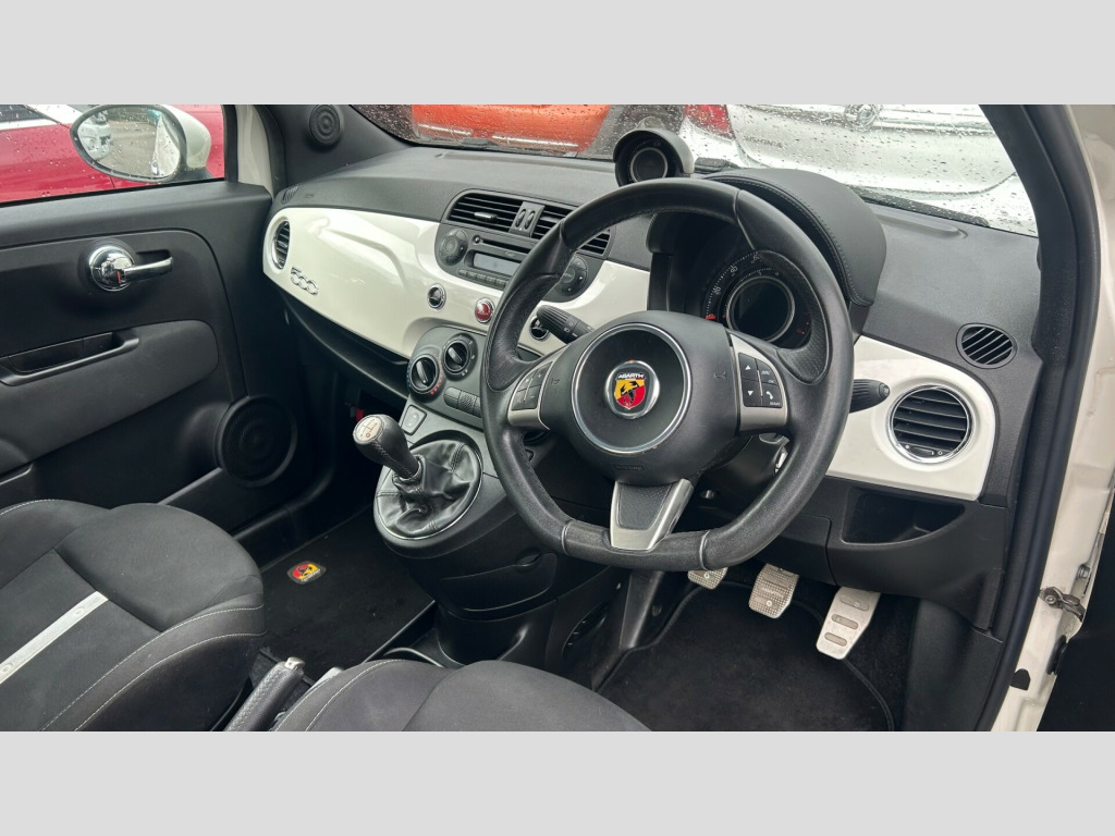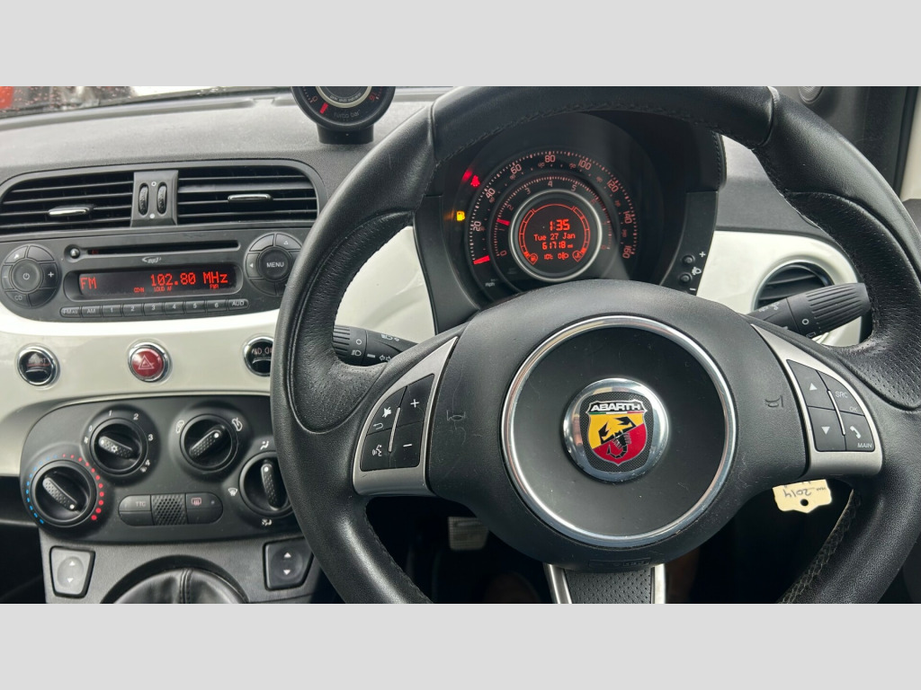 This 2014 Abarth 1.4 T-Jet Hatchback with just 61717 miles on the clock is a sleek, ULEZ compliant petrol vehicle with 4 seats and 3 doors, making it perfect for urban driving. Its Euro 5 engine delivers 135 bhp, ensuring a powerful and efficient ride. The car comes in Gara White and features 16in Alloy Wheels, Electrically Adjustable and Heated Body Coloured Door Mirrors, as well as Electric Windows in the front. Whether you're cruising around town or hitting the open road, this stylish hatchback offers a comfortable and sporty driving experience, making it a great choice for anyone in the market for a reliable and fun-to-drive vehicle. Part exchange welcome, warranty. in alloy wheels, door mirrors - body coloured, door mirrors - electrically adjustable and heated, electric windows - front, fix and go puncture repair kit, abs - anti-lock braking system, asr - anti-slip regulation, airbags - driver, airbags - drivers knee, airbags - passenger, airbags - side, airbags - window, central locking - remote, ebd - electronic brakeforce distribution, esp - electronic stability programme, hba - hydraulic brake assist, hill holder, msr - motor slip regulation, air conditioning, electrochromatic rear view mirror, pollen filter, seats - drivers height adjustment, seats - passengers memory function, smoking kit, steering wheel - blue&me controls, steering wheel - height and reach adjustment, steering wheel - leather, blue&me - hands free system, radio-cd and mp3 player, usb and aux, front fog lights, parking sensors - rear, power steering - dualdrive electric