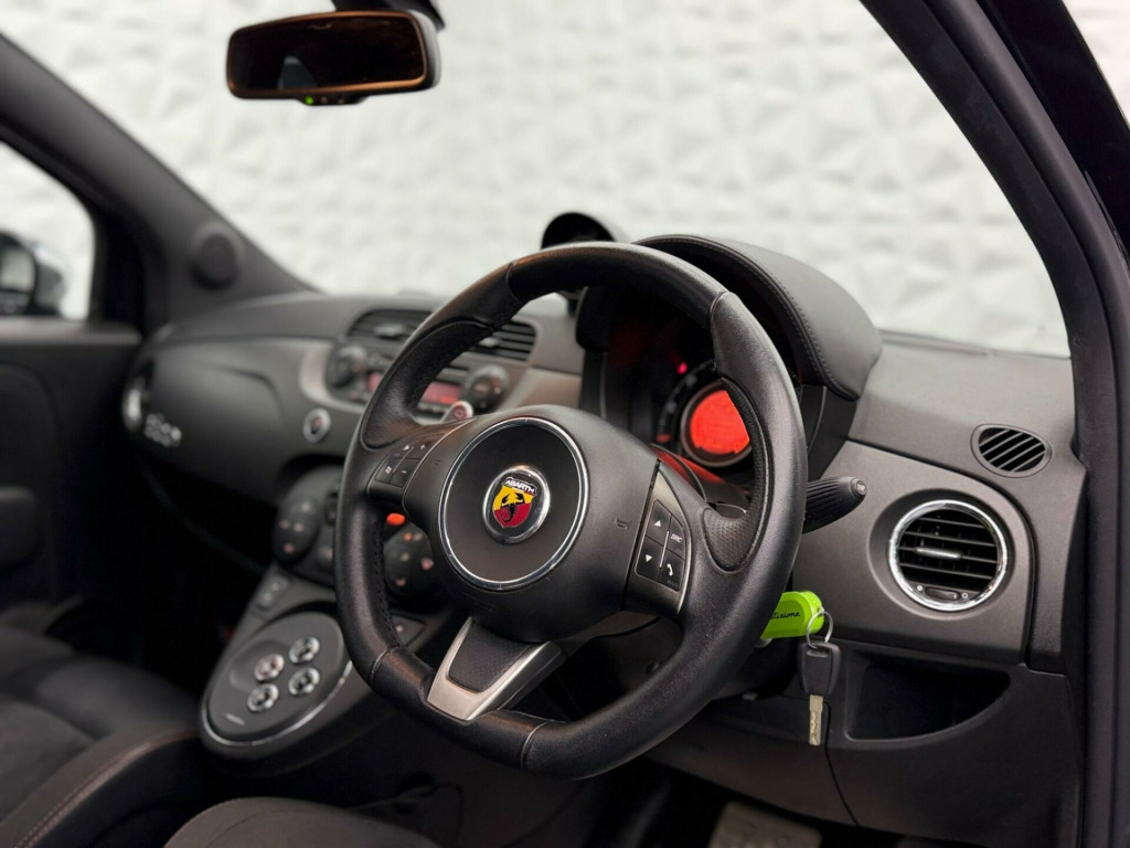 With an exceptionally low mileage of just 31,997 miles for its 2012 registration, this Abarth 595 T-Jet Competizione presents a remarkable find. This particular model, in Competizione trim, is powered by a spirited 1.4L petrol engine, promising an engaging driving experience. Its provenance is further assured with a clear vehicle history check and an MOT valid until February 2027. The last service was completed on 9th February 2026 at 31,997 miles, and it comes with a 3 month warranty for your peace of mind. Inside, you'll find the striking Abarth Corse Seats by Sabelt, upholstered in a combination of leather and Alcantara, available in black, natural, or red, adding a touch of sporty luxury.The performance of this Abarth 595 is a key highlight, boasting an impressive 0-62mph acceleration time of just 7.6 seconds, demonstrating its agile nature. This quick acceleration sets it apart from many other vehicles in its class. Adding to its appeal are the dual roof options: an electric sunroof for open air driving and a fixed glass roof, which can also be described as a panoramic sunroof, allowing natural light to flood the cabin. These features combine to make this Abarth 595 T-Jet Competizione a compelling choice for those seeking performance and style.. 17in Alloy Wheels - 5-Spoke Anthracite Diamond Cut, ABS - Anti-Lock Braking System, ASR - Anti-Slip Regulation, Air Conditioning, Airbags - Driver, Airbags - Drivers Knee, Airbags - Passenger, Airbags - Side, Airbags - Window, Bi-Xenon Headlights, Blue&Me - Hands Free System, Central Locking - Remote, Door Mirrors - Body Coloured, Door Mirrors - Electrically Adjustable and Heated, EBD - Electronic Brakeforce Distribution, ESP - Electronic Stability Programme, Electric Windows - Front, Electrochromatic Rear View Mirror, Front Fog Lights, HBA - Hydraulic Brake Assist, Headlights - Cleaning System, Hill Holder, MSR - Motor Slip Regulation, Parking Sensors - Rear, Pollen Filter, Power Steering - Dualdrive Electric, Radio-CD and MP3 Player, Red Brake Calipers, Seats - Drivers Height Adjustment, Steering Wheel - Blue&Me Controls, Steering Wheel - Height and Reach Adjustment, Steering Wheel - Leather, USB and AUX, Windows - Dark Tinted Privacy Glass, Sunroof - Electric, 17in Alloy Wheels - 10-Spoke Diamond Finish, Yellow Brake Calipers, Abarth Corse Seats by Sabelt - Leather and Alcantara - Black, Fixed Glass Roof, 17in Alloy Wheels - Petal Design Anthracite - Silver, Abarth Corse Seats by Sabelt - Fabric - Black, Abarth Corse Seats by Sabelt - Leather and Alcantara - Grey, Abarth Corse Seats by Sabelt - Leather and Alcantara - Natural, Abarth Corse Seats by Sabelt - Leather and Alcantara - Red, 17in Alloy Wheels - Petal Design - White Diamond Cut.