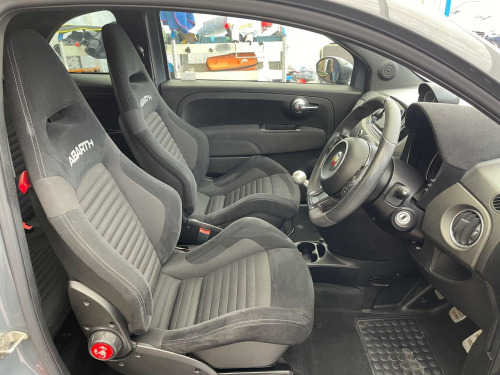 6 MONTHS WARRANTY. FULL SERVICE HISTORY MOT. CIRCUIT GREY PASTEL. FACTORY SABELT BUCKET SEATS. This 2018 Abarth 595 T-Jet Competizione offering a unique blend of performance and style. Powered by a spirited 1.4L Petrol engine, this Euro 6 compliant model delivers exhilarating performance, achieving 0-62mph in a rapid 6.7 seconds. trim boasts eye catching yellow Brembo brake calipers, ensuring both impressive stopping power and a distinctive visual flair. Inside, youll find modern conveniences designed to enhance your driving experience. Automatic climate control keeps the cabin at your preferred temperature, while rear parking sensors assist with manoeuvring. Stay connected and entertained with the touchscreen radio, featuring navigation, Bluetooth, USB connectivity, and DAB digital radio. Seamlessly integrate your smartphone with Apple CarPlay and Android Auto for easy access to your favourite apps and music. These features collectively highlight how this Abarth 595 Competizione offers a superior and more enjoyable driving experience compared to other vehicles in its class.