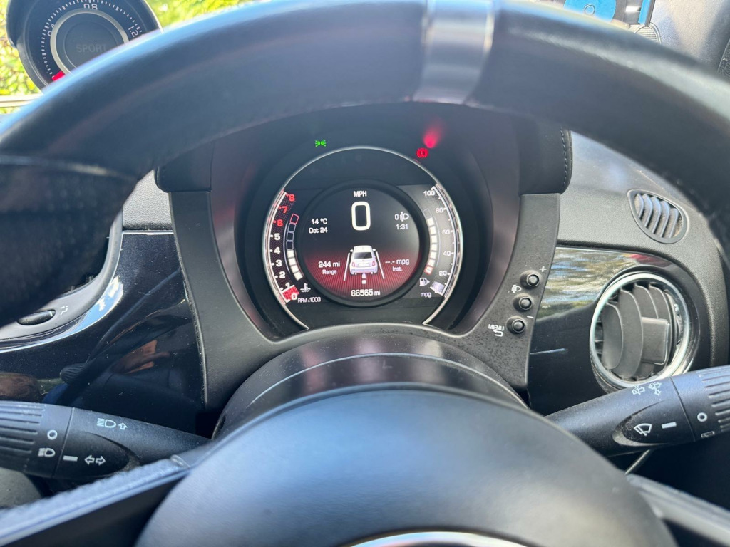 This 2016 Abarth 595 T-Jet offers a thrilling driving experience combined with distinctive styling. Powered by a lively 1.4L petrol engine, this Euro 6 compliant model delivers impressive performance, reaching 0-62mph in just 7.8 seconds. Inside, you'll find a premium HiFi by Beats sound system, ensuring your journeys are accompanied by exceptional audio quality. The 5 inch touchscreen radio comes equipped with Bluetooth connectivity for hands free calls and music streaming, as well as USB and DAB digital radio for a wide range of entertainment options.Adding to its sporty appeal, this Abarth 595 features eye catching Abarth side stripes and gloss finish red door mirrors, complemented by dark tinted rear quarter windows for added privacy and style. Manual air conditioning keeps the cabin comfortable in all conditions. These carefully selected features, from the powerful engine to the advanced infotainment and striking design elements, set this 2016 Abarth 595 T-Jet apart, offering a superior and more engaging driving proposition. v power point, 16in alloy wheels - 8-spoke anthracite, 5in touchscreen radio with bluetooth - usb - dab, abs - anti-lock braking system, air conditioning - manual, airbags - driver, airbags - drivers knee, airbags - front side, airbags - passenger, airbags - window, body colour dashboard cover, central locking - remote, closed glove box - net storage, ebd - electronic brakeforce distribution, electric body colour external mirrors, electric windows - front, electrically assisted power steering - dualdrive with sport mode, electronic stability control-asr-hill holder, fix and go puncture repair kit, front fog lights, high performance brakes, led day running lights - drl, lateral 595 logos, leather bound steering wheel with remote controls - mt, leather wrapped binnacle hood, matt black front and rear bumper insert, poly-elliptical headlights, racing cockpit display, racing steel pedals, satin chrome finished dashboard, satin chrome finished gear knob, satin chrome finishing, satin chrome finishing for all interior details, seats - height adjustable - front, seats - passengers memory function, split folding 50:50 rear seat, sport button, steering wheel - height adjustment, steering wheel with viewfinder and controls satin chrome finishing, tft instrument cluster, tpms - tyre pressure monitoring system, ttc - torque transfer control, twin chrome abarth exhaust, uconnect access via mobile, white illumination for manometer, hifi by beats, dark tinted rear quarter windows, abarth side stripe and door mirrors - gloss finish - red, smoking kit, fabric - black