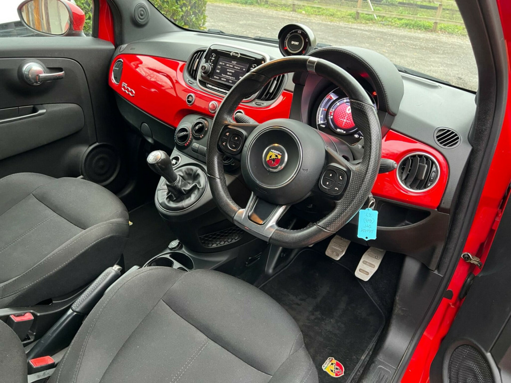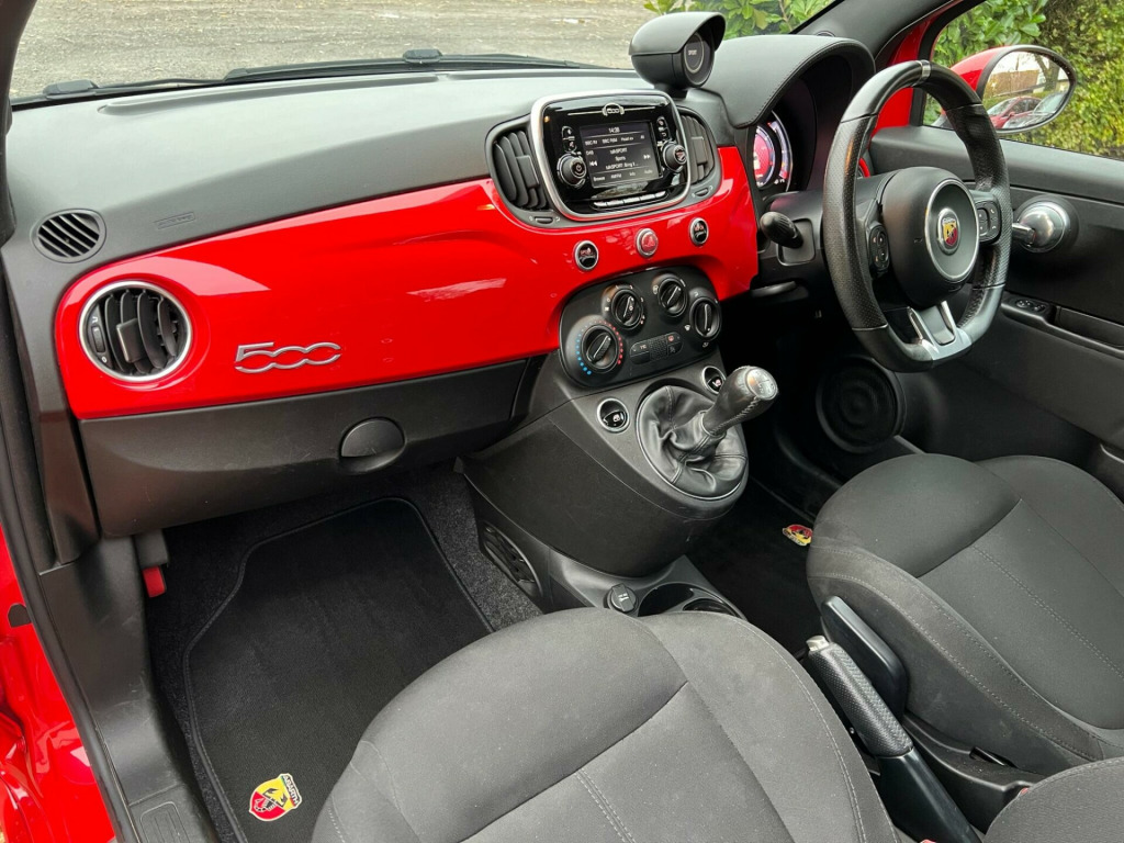 A Lovely Low Mileage ONE OWNER Example With A Full Service History. In Exceptional Condition Throughout with Freshly Refurbished 17'' Diamond Cut Alloy Wheels. 12V Power Point, 16in Alloy Wheels - 8-Spoke Anthracite, 5in Touchscreen Radio with Bluetooth - USB - DAB, ABS - Anti-Lock Braking System, Air Conditioning - Manual, Airbags - Driver, Airbags - Drivers Knee, Airbags - Front Side, Airbags - Passenger, Airbags - Window, Body Colour Dashboard Cover, Central Locking - Remote, Closed Glove Box - Net Storage, EBD - Electronic Brakeforce Distribution, Electric Body Colour External Mirrors, Electric Windows - Front, Electrically Assisted Power Steering - DUALDRIVE with Sport Mode, Electronic Stability Control-ASR-Hill Holder, Fix and Go Puncture Repair Kit, Front Fog Lights, High Performance Brakes, LED Day Running Lights - DRL, Lateral 595 Logos, Leather Bound Steering Wheel with Remote Controls - MT, Leather Wrapped Binnacle Hood, Matt Black Front and Rear Bumper Insert, Poly-Elliptical Headlights, Racing Cockpit Display, Racing Steel Pedals, Satin Chrome Finished Dashboard, Satin Chrome Finished Gear Knob, Satin Chrome Finishing, Satin Chrome Finishing for All Interior Details, Seats - Height Adjustable - Front, Seats - Passengers Memory Function, Split Folding 50:50 Rear Seat, Sport Button, Steering Wheel - Height Adjustment, Steering Wheel with Viewfinder and Controls Satin Chrome Finishing, TFT Instrument Cluster, TPMS - Tyre Pressure Monitoring System, TTC - Torque Transfer Control, Twin Chrome Abarth Exhaust, Uconnect Access Via Mobile, White Illumination for Manometer, 17in Alloy Wheels - 10-Spoke Diamond Finish, Fabric - Black. Full service history