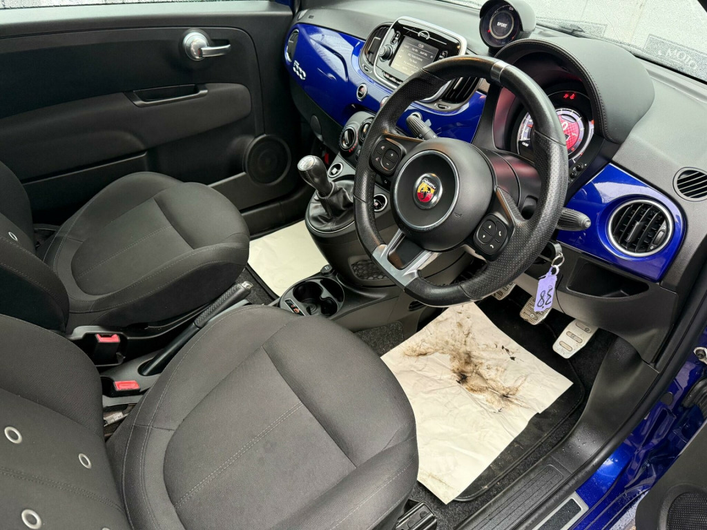 This 2017 Abarth 595 T-Jet offers an exciting driving experience with its spirited 1.4L petrol engine. As a Euro 6 compliant vehicle, it meets modern emissions standards. Inside, you'll find a 5 inch touchscreen radio complete with Bluetooth connectivity for music and calls, USB input, and DAB digital radio. For your comfort, manual air conditioning is fitted, and the passenger seats include a memory function, adding a touch of convenience.12 MONTHS WARRANTY £299The Abarth 595 T-Jet stands out with its impressive acceleration, achieving 0 to 62 miles per hour in just 7.8 seconds. This performance metric demonstrates its agility and responsiveness, setting it apart from many other vehicles in its class. This combination of engaging performance and practical features makes the 2017 Abarth 595 T-Jet a compelling choice for those seeking a car that is both fun to drive and well equipped.OVER 100 CARS IN SKOCK PLEASE VIEW WEBSITE. 12V Power Point, 16in Alloy Wheels - 8-Spoke Anthracite, 5in Touchscreen Radio with Bluetooth - USB - DAB, ABS - Anti-Lock Braking System, Air Conditioning - Manual, Airbags - Driver, Airbags - Drivers Knee, Airbags - Front Side, Airbags - Passenger, Airbags - Window, Body Colour Dashboard Cover, Central Locking - Remote, Closed Glove Box - Net Storage, EBD - Electronic Brakeforce Distribution, Electric Body Colour External Mirrors, Electric Windows - Front, Electrically Assisted Power Steering - DUALDRIVE with Sport Mode, Electronic Stability Control-ASR-Hill Holder, Fix and Go Puncture Repair Kit, Front Fog Lights, High Performance Brakes, LED Day Running Lights - DRL, Lateral 595 Logos, Leather Bound Steering Wheel with Remote Controls - MT, Leather Wrapped Binnacle Hood, Matt Black Front and Rear Bumper Insert, Poly-Elliptical Headlights, Racing Cockpit Display, Racing Steel Pedals, Satin Chrome Finished Dashboard, Satin Chrome Finished Gear Knob, Satin Chrome Finishing, Satin Chrome Finishing for All Interior Details, Seats - Height Adjustable - Front, Seats - Passengers Memory Function, Split Folding 50:50 Rear Seat, Sport Button, Steering Wheel - Height Adjustment, Steering Wheel with Viewfinder and Controls Satin Chrome Finishing, TFT Instrument Cluster, TPMS - Tyre Pressure Monitoring System, TTC - Torque Transfer Control, Twin Chrome Abarth Exhaust, Uconnect Access Via Mobile, White Illumination for Manometer, Fabric - Black.