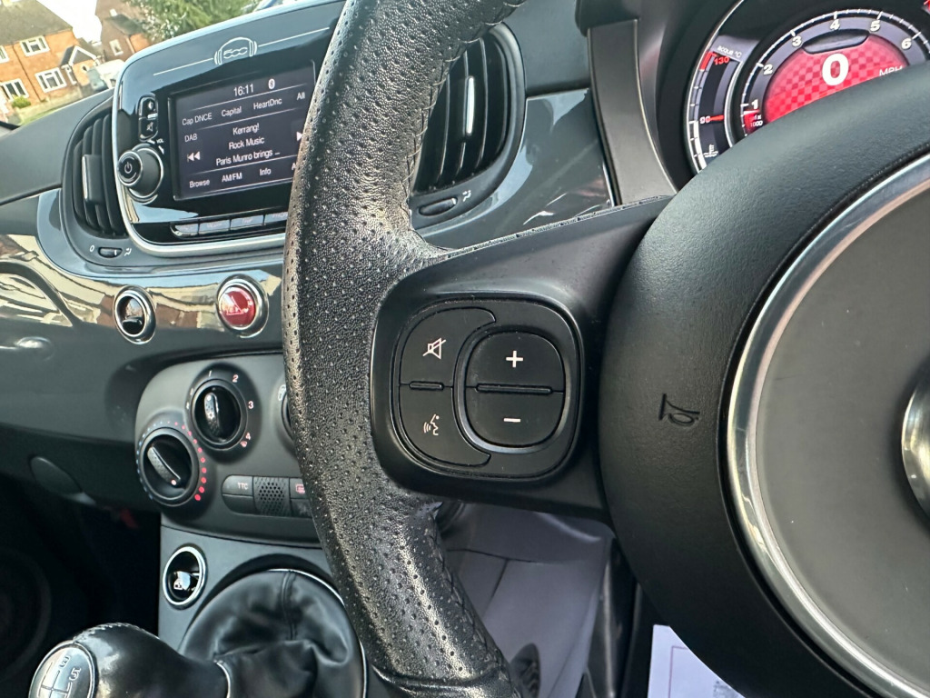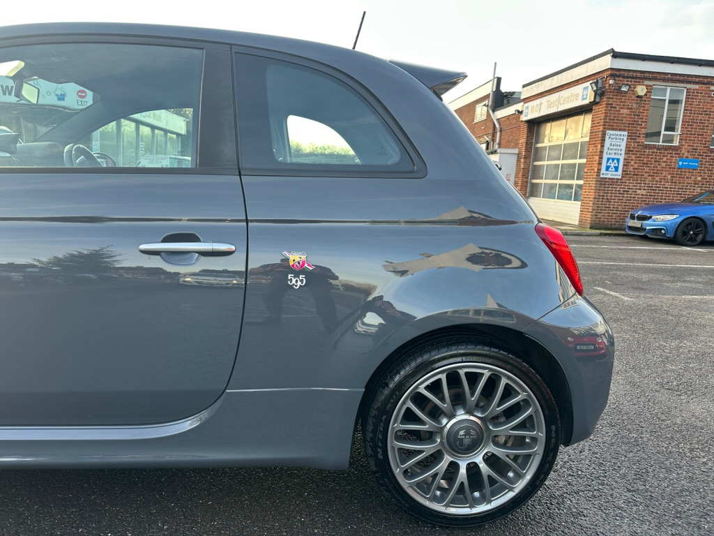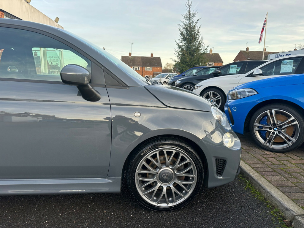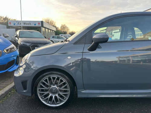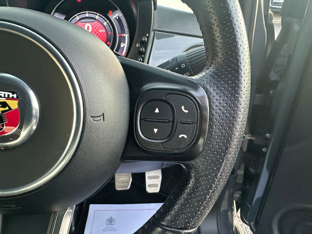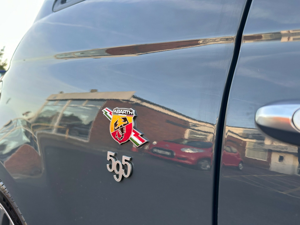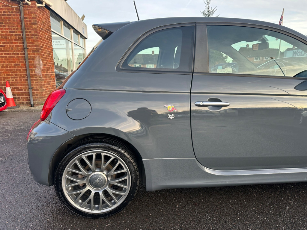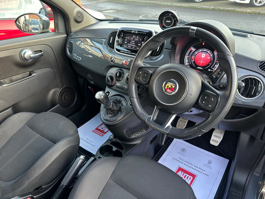For sale is a 2018 Abarth 1.4 T-Jet Hatchback with only 45766 miles on the clock. This three-door, four-seat vehicle is powered by a petrol engine and comes with a manual transmission. It's ULEZ compliant and has an MOT that expires on 13/10/2026. The car comes with 17in alloy wheels, a 5in touchscreen radio with Bluetooth, USB and DAB, as well as a 12V power point. The exterior is finished in a sleek pastel Circuit Grey, complementing the black fabric interior. With its Euro 6 certification and 145ps engine, this Abarth is a stylish and efficient choice for any driver. v power point, 5in touchscreen radio with bluetooth - usb - dab, racing cockpit display, uconnect access via mobile, white illumination for manometer, 16in alloy wheels - 8-spoke anthracite, electric body colour external mirrors, electric windows - front, fix and go puncture repair kit, heated door mirrors, lateral 595 logos, matt black front and rear bumper insert, satin chrome finishing, twin chrome abarth exhaust, 7in tft instrument cluster, body colour dashboard cover, closed glove box - net storage, leather wrapped binnacle hood, racing steel pedals, satin chrome finished dashboard, satin chrome finished gear knob, satin chrome finishing for all interior details, seats - height adjustable - front, seats - passengers memory function, split folding 50:50 rear seat, steering wheel - height adjustment, steering wheel with viewfinder and controls satin chrome finishing, abs - anti-lock braking system, airbags - driver, airbags - drivers knee, airbags - front side, airbags - passenger, airbags - window, central locking - remote, ebd - electronic brakeforce distribution, electronic stability control-asr-hill holder, electrically assisted power steering - dualdrive with sport mode, high performance brakes, sport button, tpms - tyre pressure monitoring system, ttc - torque transfer control, front fog lights, led day running lights - drl, poly-elliptical headlights