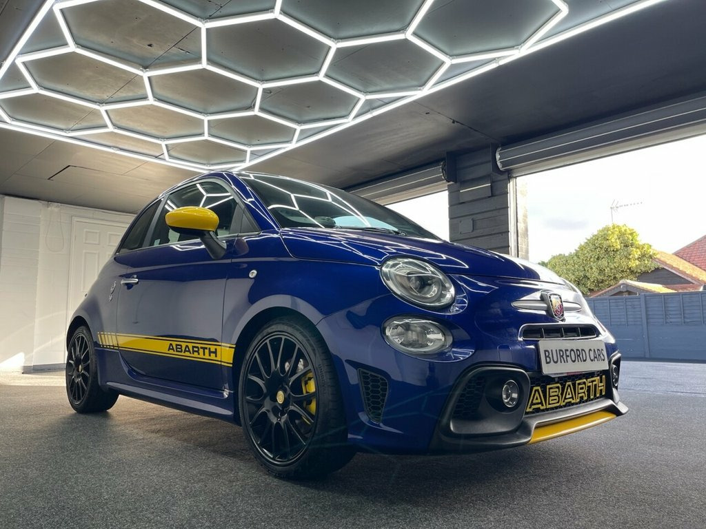 A STUNNING VERY LOW MILEAGE EXAMPLE WITH A FULL SERVICE HISTORY AND 2 KEYS. FINISHED IN PODIUM BLUE METALLIC WITH SPORTS INTERIOR AND YELLOW PACK. This 2020 Abarth 595 T-Jet Pista 70th is a remarkable find with exceptionally low mileage for its age, having covered just 26,000 miles. This Euro 6 compliant model boasts a spirited 1.4L petrol engine and comes with an MOT valid until September 2026, offering peace of mind for the road ahead. Inside, you'll find modern conveniences including air conditioning, seamless integration with Apple CarPlay and Android Auto, and a 7 inch touchscreen radio complete with Bluetooth, USB, and DAB capabilities. The performance of this Abarth 595 is a key highlight, with its impressive 0-60mph acceleration achieved in just 7.3 seconds. This quick acceleration demonstrates how this particular vehicle offers a more engaging driving experience compared to many others in its class. The Pista 70th trim level further enhances its appeal, making this a compelling choice for those seeking a car that combines sporty performance with everyday usability. ++ PODIUM BLUE ++, ++ FULL SERVICE HISTORY ++, ++ YELLOW COLOUR PACK ++, ++ APPLE CAR PLAY + ANDROID AUTO ++, ++ 2 KEYS ++, Podium Blue, Colour Kit - Yellow, 12V Power Point, 17in Alloy Wheels - Formula - Matt Black, 7in TFT Instrument Cluster with Sports M, 7in Touchscreen Radio with - BT - USB - , ABS - Anti-Lock Braking System, Air Conditioning, Airbags - Driver, Airbags - Drivers Knee, Airbags - Front Side, Airbags - Passenger, Airbags - Window, Apple Carplay - Android Auto, BMC High Performance Air Filter, Central Locking - Remote, Colour Kit - Red, Door Mirrors - Electrically Adjustable a, Dual Mode Record Monza Exhaust System wi, EBD - Electronic Brakeforce Distribution, Electric Wind