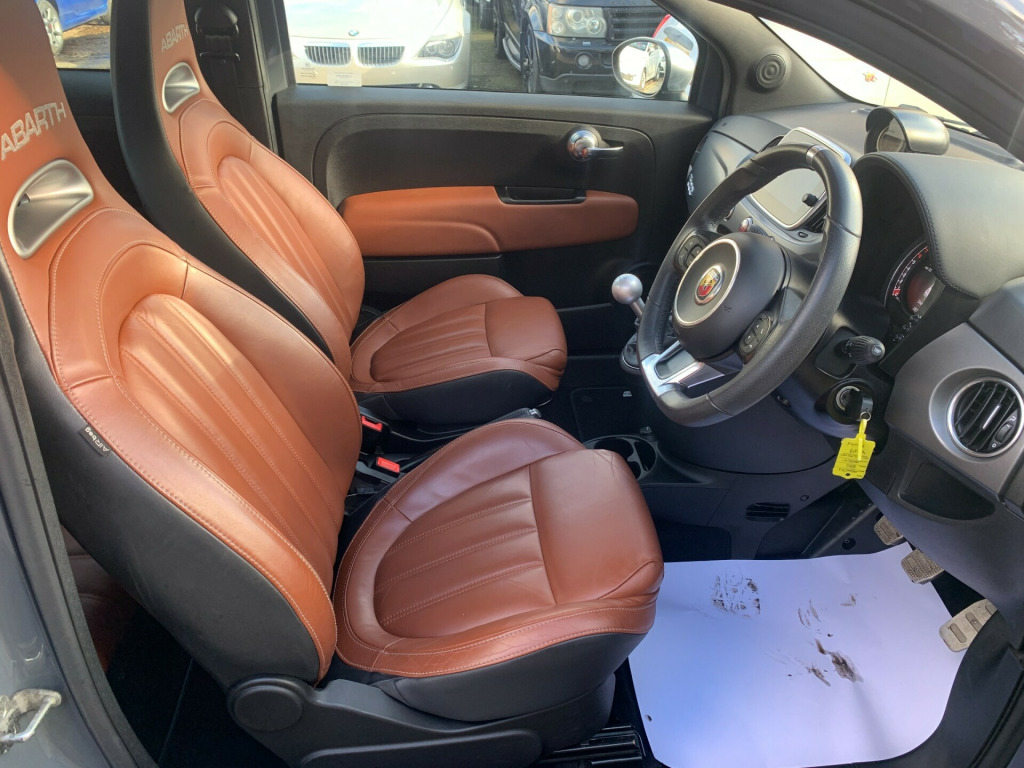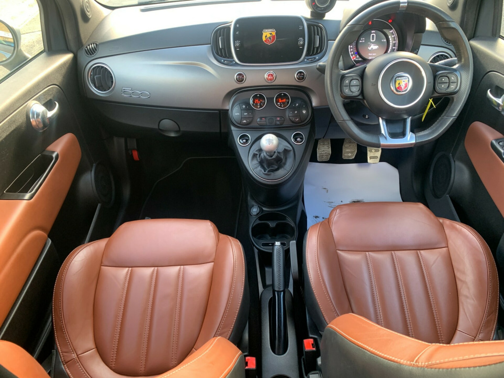 Due in2019/19. Finished in Circuit Grey with Full Natural Leather interior. 28,000 miles with full service history. Long/new mot supplied, 5 speed manual. 2x keys and service book pack present.This is the 1.4 turbo 165 bhp Turismo spec car. and combines the comfort of leather seats but retains the sporty feeling with Koni suspension which keeps the car planted to the road! The car is a nice standard example with all the usual refinements including:Electric windowsElectric heated mirrorsPower steeringMulti AirbagsTraction controlAir conTouch screen Uconnect systemDAB RadioBluetoothParking sensorsImmobiliser17'' Alloy wheelsRemote central lockingHeight adjustable drivers seatRear parking sensorsClimate controlAuto headlightsAll our Fiat 500's/Abarth cars are inspected through the workshop, serviced and mot'd where applicable prior to sale and come with 6 months warranty.Please click on our Dealer stock for more quality used cars., v power point, 7in tft instrument cluster with sports mode, 7in touchscreen radio with nav - bt - usb - dab, apple carplay - android auto, uconnect 7in touschscreen dab with 6 speakers - bluetooth with audio streaming and usb, uconnect live services, 17in alloy wheels - turismo, 70th anniversary side badge, body colour front and rear bumper insert, dark tinted rear quarter windows, door mirrors - electrically adjustable and heated, electric windows - front, fix and go puncture repair kit, satin chrome finished mirror caps, twin exhausts with satin steel tailpipes, abs - anti-lock braking system, airbags - driver, airbags - drivers knee, airbags - front side, airbags - passenger, airbags - window, central locking - remote, ebd - electronic brakeforce distribution, electronic stability control-asr-hill holder, automatic climate control, dusk and rain sensors, satin grey dashboard cover, seats - height adjustable - front, split folding 50:50 rear seat, sports pedals - aluminium, steering wheel - height adjustment, bmc high performance air filter, electrically assisted power steering - dualdrive with sport mode, koni fsd rear shock absorbers, rear koni suspension, rear parking sensors, tpms - tyre pressure monitoring system, ttc - torque transfer control, front fog lights, led day running lights - drl, poly-elliptical headlights
