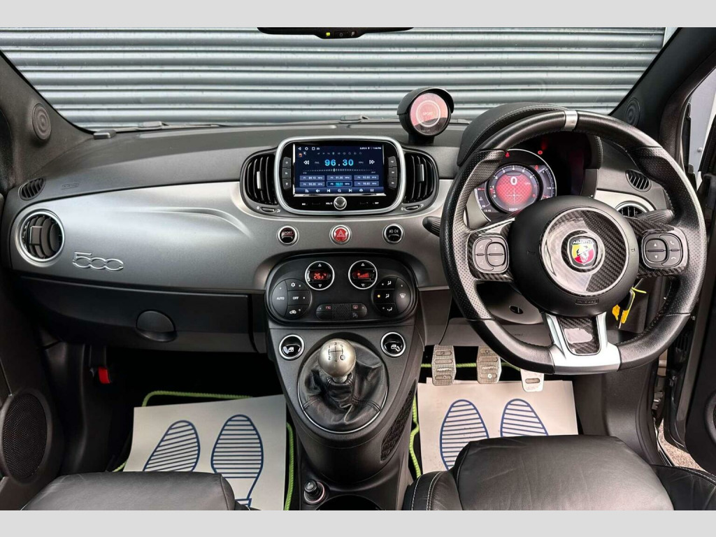 Abarth 595 1.4 T-Jet Turismo Hatchback 3dr Petrol Manual Euro 6 (165 bhp) ULEZ FREE. Finished in Record grey metallic grey with an anthracite roof lining and a black full lounge leather interior. 17 gloss black alloys, rear camera, Apple CarPlay, Android Auto, carbon steering wheel inlays, red sports calipers, DAB digital radio, Blue and me connection, dash rev counter, air conditioning, multifunction steering wheel, AUX/USB connection, Bluetooth phone preparation, heated front windscreen windscreen, power controlled door mirrors, remote central locking, auto lights and wipers. Here at Saracen Motor Group we have been awarded AA Platinum dealership recognition along with being nominated for best customer service by Autotrader for 2021,2022,2023,2024 & 2025. We are a 5-star dealership with over 600 5-star reviews across all internet platforms including Autotrader and have been regarded as one of the best dealerships to buy from in the UK. Our preparation inspected each vehicle to the highest level possible for its age and mileage. You can rest assure your next car has been cared for to the highest standard. Service history, V5 and the HPI certificate will all be present on viewing and collection. With our location based in Battlesbridge, Essex you can enjoy a haggle-free buying experience where you can drive away the same day if prior arranged, additional fees apply please see our website for details.