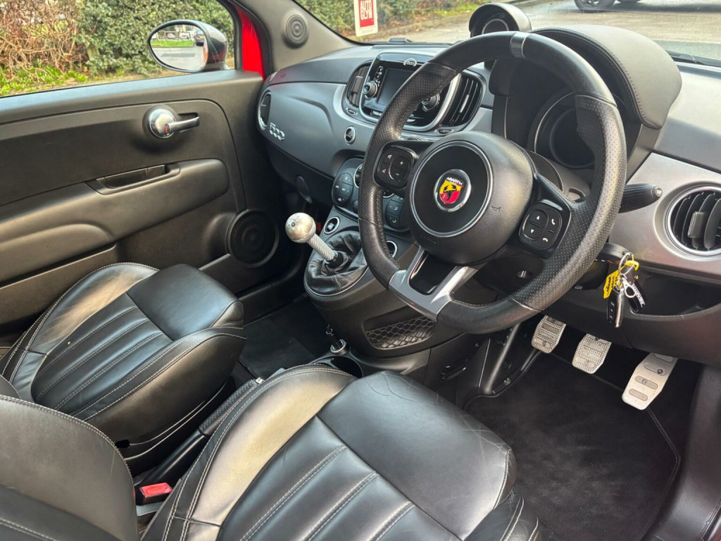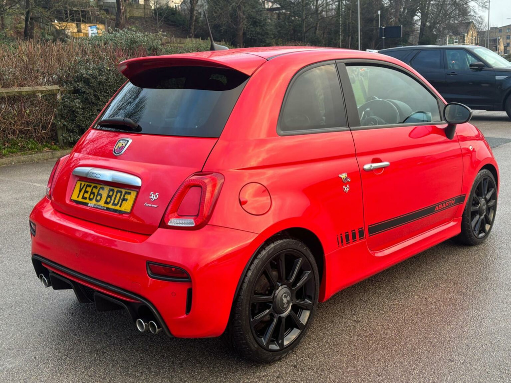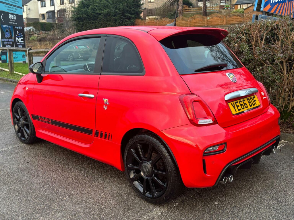 WE ARE PLEASED TO OFFER THIS HIGHLY DESIRABLE HIGH SPECIFICATION HIGHLY MAINTAINED RARE LOW MILEAGE LOW OWNERSHIP ABARTH 595 1.4 T-JET TURISMO THREE DOOR + THIS TRULY STUNNING EXAMPLE IS FINISHED IN THE BEST COLOUR OF PASSION RED PAINTWORK AND IS COMPLEMENTED WITH A FULL BLACK LEATHER UPHOLSTERY + ONLY A MERE 27,380 MILES HAS BEEN COVERED IN TOTAL BY THREE OWNERS IN TOTAL + LAST MATURE LADY OWNER AND IS BACKED WITH AN OUTSTANDING SERVICE HISTORY WHICH IS COMPRISED OF NINE SERVICES + THE SERVICES HAVE BEEN CARRIED OUT AT 3609 MILES, 7675 MILES, 11582 MILES, 13572 MILES, 17342 MILES, 19972 MILES, 22974 MILES, 24578 MILES AND 27380 MILES WHICH INCLUDED THE CAMBELT KIT AND WATER PUMP BEING CHANGED + EXCEPTIONAL CONDITION THROUGHOUT AND MUST NOT BE CONFUSED WITH LESSER EXAMPLES AVAILABLE + DRIVES SUPERB + 165 BHP MODEL + FULL SPECIFICATION WITH A HOST OF OPTIONAL EXTRAS WHICH INCLUDES SATELLITE NAVIGATION / DAB TUNER / BLUETOOTH HANDS FREE PHONE PACK / SPORTS LEATHER MULTI FUNCTION STEERING WHEEL / U-CONNECT / 17 MULTI SPOKE ALLOY WHEELS FINISHED IN GLOSS BLACK WHICH ARE FITTED WITH UNIROYAL TYRES ALL ROUND / ABARTH SIDE GRAPHICS IN BLACK / REAR PARKING PARKING DISTANCE CONTROL / FRONT SPORT SEATS / TINTED GLASS / SWITCHABLE SPORTS EXHAUST WITH REMOTE CONTROL PLUS MUCH MORE + HANDBOOK PACK + STAMPED SERVICE BOOK WITH INVOICES AND RECEIPTS + 2 X KEYS + ANY TRIAL OR INSPECTION IS WELCOMED + HPI CLEAR WITH CERTIFICATE + SIX MONTHS NATIONWIDE WARRANTY IS INCLUDED + VIEWING IS ESSENTIAL TO APPRECIATE THIS TRULY CHERISHED MUCH SOUGHT AFTER EXAMPLE OF THIS POPULAR MODEL. We have been established in Baildon for over 20 years. All our vehicles are fully inspected, prepared and valeted. We are finance specialists. Part exchange is welcome. All major credit and debits accepted. Open 7 days. Our postcode is BD177EX.
