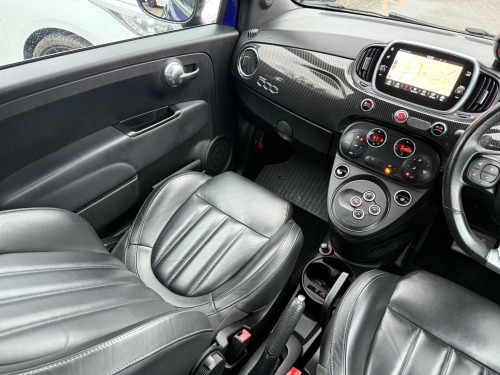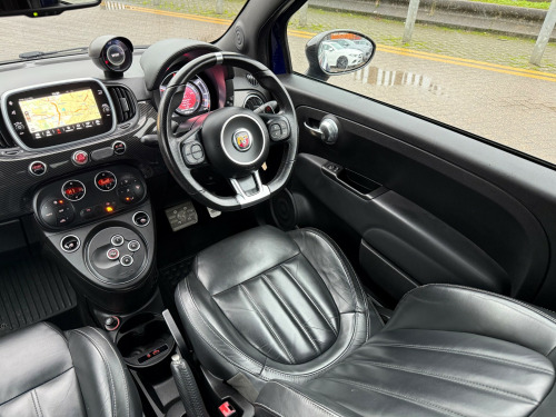 2 KEYS, ULEZ FREE, FRESH SERVICE, FRESH MOT, NAVIGATION, BLUETOOTH, CLIMATE CONTROL, LEATHER SEATS, 3 FORMER KEEPER, PARKING SENSORSThis 2016 Abarth 1.4 T-Jet Turismo Hatchback with only 67100 miles on the clock is a stunning Podium Blue 3-door, 4-seat vehicle that runs on petrol and is ULEZ compliant. With MOT valid until 26/01/2026, this Euro 6 engine delivers an impressive 165 bhp while offering the convenience of an automatic transmission. The car comes equipped with Abarth Side Stripe and Door Mirrors in Gloss Finish - Black, 7in Touchscreen Radio with NAV - BT - USB - DAB, and Abarth Sports Leather in Black. Other notable features include an Electrochromatic Rear View Mirror, making this hatchback a stylish and practical choice for any driver. Overall, this Abarth is a fantastic opportunity for those seeking a reliable and powerful vehicle with a sleek design. v power point, 5in touchscreen radio with bluetooth - usb - dab, racing cockpit display, tft instrument cluster, uconnect access via mobile, white illumination for manometer, 17in alloy wheels - turismo, back door 595 turismo logo, black brake calipers, body colour front and rear bumper insert, dark tinted rear quarter windows, electric satin chrome external mirrors, electric windows - front, fix and go puncture repair kit, satin chrome finishing, twin chrome abarth exhaust, abs - anti-lock braking system, airbags - driver, airbags - drivers knee, airbags - front side, airbags - passenger, airbags - window, central locking - remote, ebd - electronic brakeforce distribution, electronic stability control-asr-hill holder, automatic climate control, closed glove box - net storage, leather bound steering wheel with mta and remote controls, leather wrapped binnacle hood, racing alutex pedals and gear knob, satin chrome finished dashboard, satin chrome finishing for all interior details, satin grey dashboard cover, seats - height adjustable - front, seats - passengers memory function, split folding 50:50 rear seat, steering wheel - height adjustment, steering wheel with viewfinder and controls satin chrome finishing, bmc high performance air filter, electrically assisted power steering - dualdrive with sport mode, high performance perforated brakes, koni fsd rear shock absorbers, parking sensors - rear, sport button, tpms - tyre pressure monitoring system, ttc - torque transfer control, front fog lights, led day running lights - drl, poly-elliptical headlights