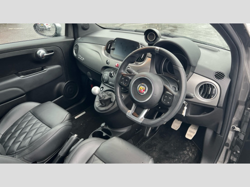 Abarth 595 1.4 T-Jet 165 Turismo 3dr 7" TFT instrument display with sports mode, Apple car play/Android Auto, Dualdrive PAS, E-call, Odometer, Rear parking sensors, Sports button, Trip computer, Wakeup screen for 7" radio, Koni rear suspension with FSD technology (Frequency Selective Damping), Torque transfer control (TTC), Black radio bezel, Uconnect radio, 595 Turismo badge, Dark tinted rear quarter windows, Dusk and rain sensors, Electric front windows, Electrically adjustable and heated door mirrors, Front fog lights, LED daytime running lights, Oil cap with key, Partial cellophane wrap, Rear window defroster, Rear wiper, Satin chrome details (Front/rear mouldings, door handles), Third brake light, Twin exhausts with satin steel tailpipes, Window integrated aerial with aluminium roof cap, 12V socket, Aluminium gear knob, Automatic climate control, Double rear seat, Driver/front passenger seat height adjustment, English handbook, Floor mats, Front head restraints, Glovebox, Height adjustable steering wheel, High performance BMC air filter, Interior stowage net, Leather cockpit, Rear headrests, Single front passenger seat, Sports leather multifunction steering wheel with controls and satin chrome detailing, Sports seats, Stainless steel pedal covers, Cool pack - 595, Tech pack - 595/595C, Turismo leather pack - 595/595C, 2 x 3-point rear seatbelts, 240x11 mm Drilled rear brake discs, 284x22 mm Drilled and ventilated front brake discs, ABS, Driver and passenger airbags, Drivers knee airbag, ESP + ASR/MSR + HBA + Hill holder, Front and rear brake calipers, Front side airbags, Head protecion side airbags, Tyre pressure monitoring system, Window airbags, Alarm, Immobiliser, Remote central locking, Satin grey dash trim, Fix and go kit