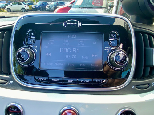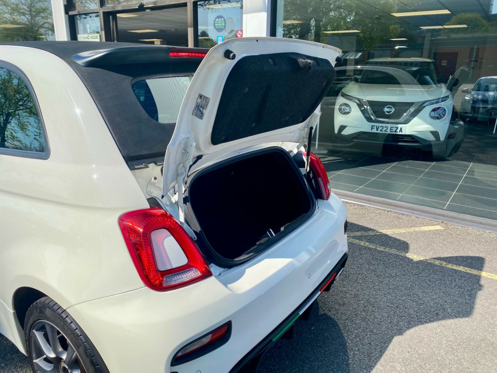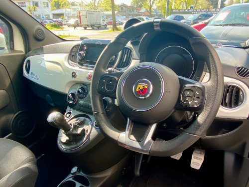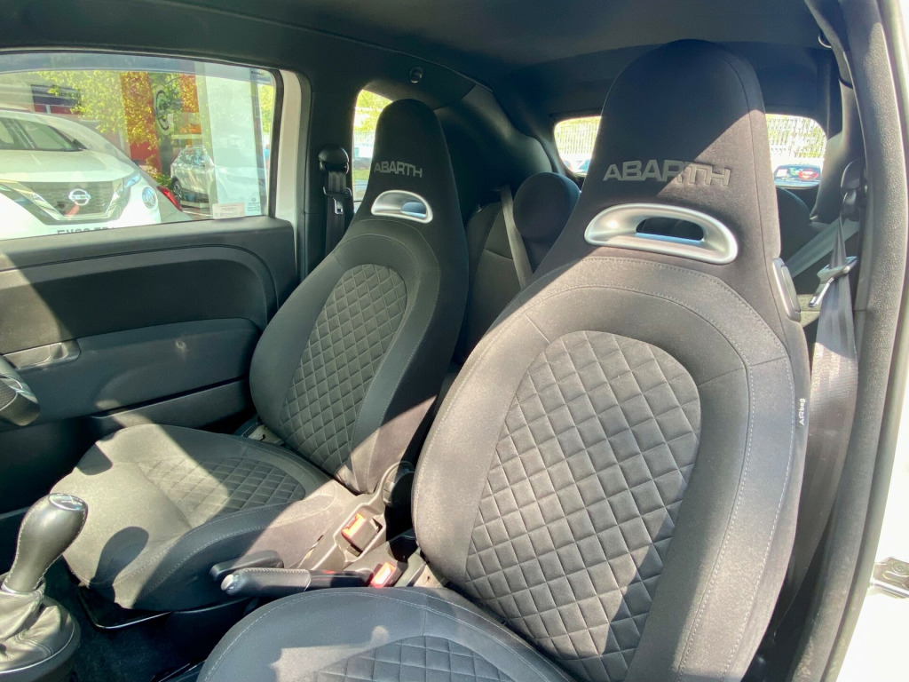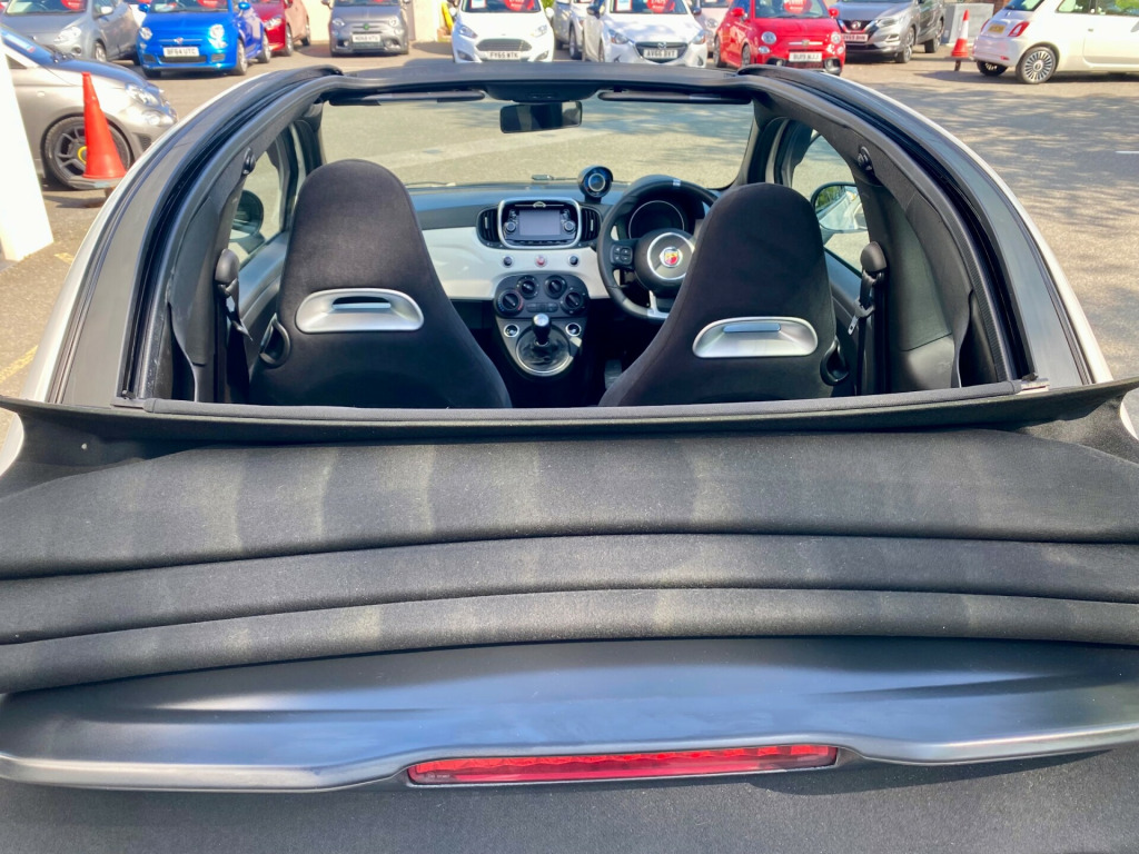 v power point, 7in tft instrument cluster with sports mode, uconnect 5in touchscreen dab radio - bluetooth with 6 speakers audio streaming and usb, uconnect live services, 16in alloy wheels - 8-spoke anthracite, 70th anniversary side badge, body coloured mirrors with electric adjustment, electric windows - front, electrically operated soft top, fix and go puncture repair kit, front bumper with honeycomb grille and embossed abarth logo, matt black front and rear bumper insert, satin chrome finished handles and badge surrounds, twin exhausts with satin steel tailpipes, abs - anti-lock braking system, airbags - driver, airbags - drivers knee, airbags - front side, airbags - passenger, airbags - window, central locking - remote, ebd - electronic brakeforce distribution, electronic stability control-asr-hill holder, electrically assisted power steering - dualdrive with sport mode, front suspension with frequency selective damping technology, rear parking sensors, tpms - tyre pressure monitoring system, ttc - torque transfer control, front fog lights, led day running lights - drl, poly-elliptical headlights, racing steel pedals, seats - height adjustable - front, split folding 50:50 rear seat, sports leather steering wheel with controls and satin-chrome detailing, steering wheel - height adjustment