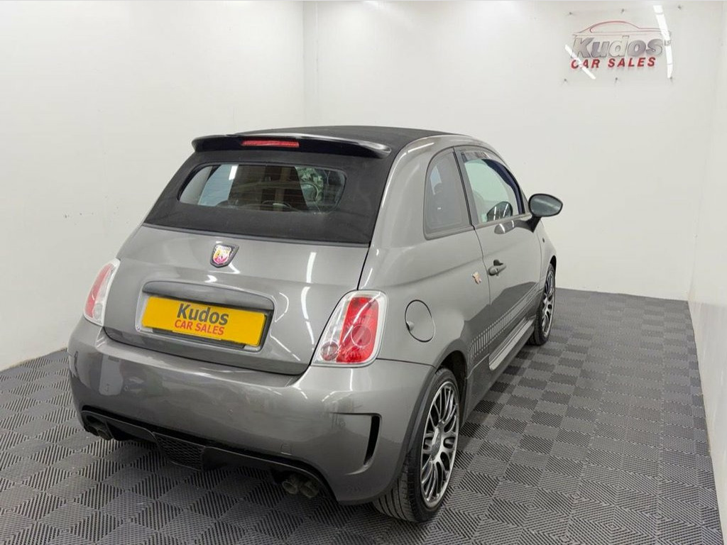 2016 ABARTH 595c 1.4 T-Jet 140 2dr CONVERTIBLE - A REALLY STUNNING CAR AND A REAL HEAD TURNER. FINISHED IN CIRCUIT GREY. NO DEPOSIT FINANCE FROM ONLY £153 p/mth. 6 MONTHS WARRANTY INCLUDED. EACH VEHICLE COMES WITH A FREE HPI CLEAR REPORT AND 1 YEAR AA BREAKDOWN COVER. MOT UNTIL 24/01/2023. SERVICE HISTORY - RECENTLY HAD SERVICE AND NEW FRONT DISCS. TIMING BELT CHANGED IN 2022. IMMACULATE CONDITION INSIDE AND OUT. GREAT SPEC: FULLY ELECTRIC ROOF, REAR PARKING SENSORS, SPORTS MODE, APPLE/ANDROID CAR PLAY, AIRCON, BLUETOOTH, REMOTE CENTRAL LOCKING, ELECTRIC WINDOWS/MIRRORS, 17'' DIAMOND CUT ALLOY WHEELS. FINANCE PACKAGES - With a number of lenders on board i am able to offer Finance to suit individual circumstances, including Sub Prime.All CARS ARE HPI CHECKED AND CLEAR. WARRANTY - At KUDOS CAR SALES every vehicle comes with a FREE 6MTH warranty through Warranty Wise. Any repairs under warranty can be carried out at your local garage - Extended warranty available on request at extra cost. INCLUDES 2 KEYS. ***ALL PART EXCHANGE'S CONSIDERED*** 12V Power Point, 16in Alloy Wheels - 8-Spoke Anthracite, ABS - Anti-Lock Braking System, Air Conditioning, Airbags - Driver, Airbags - Drivers Knee, Airbags - Passenger, Airbags - Window, ASR - Anti-Slip Regulation, AUX Connection, Blue&Me, Body Coloured Bumpers, Central Locking - Remote, Circuit Grey, Daytime Running Lights, Display Screen - 7in Multipurpose, Door Mirrors - Body Coloured, Door Mirrors - Electrically Adjustable a, EBD - Electronic Brakeforce Distribution, Electric Windows - Front, ESP - Electronic Stability Programme, Exhaust - Satin Steel - Twin, Fabric - Black with Grey Stripe - Black , Fix and Go Puncture Repair Kit, Front Fog Lights, Grab Handle - Passenger, Heated R