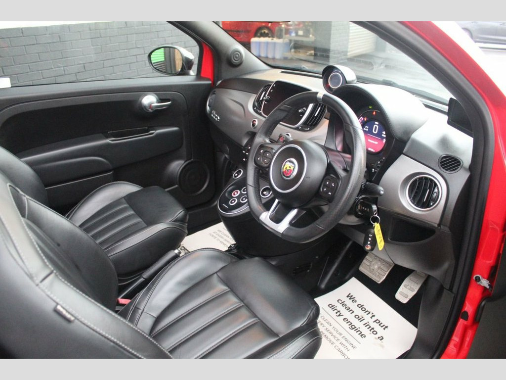 A Great Looking ABARTH 595c TURISMO MTA 165 Bhp Only 25,000 Miles Finished In Abarth Red With Contrasting Black Leather Interior,ABARTH Side Stripe,Reverse Camera,Alloy Wheels,Climate Control,Supplied With 2 keys And Fully Prepared By Our Own Workshop Prior To Handover By THE LARGEST INDEPENDENT ABARTH SPECIALIST DEALER IN THE UK. 12V Power Point, 17in Alloy Wheels - Turismo, 70th Anniversary Side Badge, 7in TFT Instrument Cluster with Sports M, 7in Touchscreen Radio with NAV - BT - US, Abarth Red, Abarth Side Stripe and Door Mirrors - Gl, Abarth Sports Leather - Black, ABS - Anti-Lock Braking System, Airbags - Driver, Airbags - Drivers Knee, Airbags - Front Side, Airbags - Passenger, Airbags - Window, Apple Carplay - Android Auto, Automatic Climate Control, BMC High Performance Air Filter, Body Colour Front and Rear Bumper Insert, Central Locking - Remote, Dark Tinted Rear Quarter Windows, Door Mirrors - Electrically Adjustable a, Dusk and Rain Sensors, EBD - Electronic Brakeforce Distribution, Electric Windows - Fro