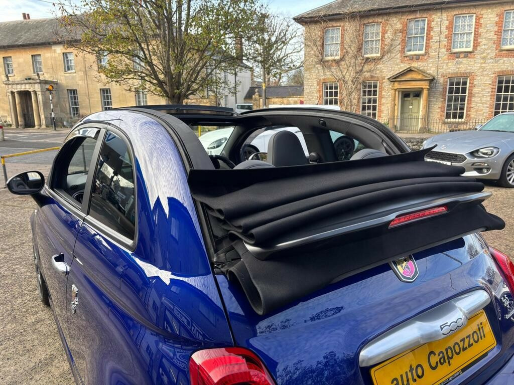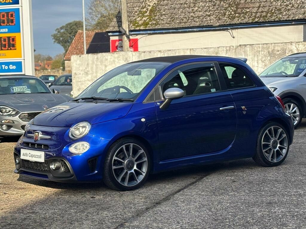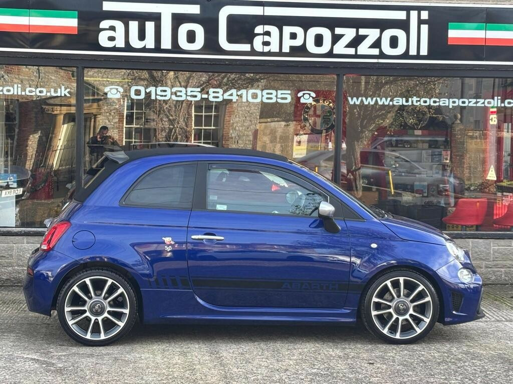 GREAT LOOKING TWO OWNER 2020 ABARTH 595C CABRIO 70th TURISMO 165bhp WITH ONLY 40K MILES, FULL ABARTH/SPECIALISTS SERVICE HISTORY, (CAMBELT/WATER PUMP CHANGED 40K MILES IN DEC 2025), FINISHED IN GORGEOUS PODIUM BLUE WITH BLACK ABARTH EMBOSSED SPORTS LEATHER TRIM, BLACK ABARTH SIDE STRIPES, SATIN CHROME EFFECT MIRROR COVERS, 17'' 10 SPOKE DIAMOND FINISH ALLOY WHEELS WITH BLACK BRAKE CALIPERS, 7'' TOUCHSCREEN DAB RADIO/SATELLITE NAVIGATION WITH APPLE CARPLAY, URBAN PACK WITH AUTO LIGHTS/WIPERS, MULTI FUNCTION BLACK LEATHER FLAT BOTTOMED STEERING WHEEL, DIGITAL CLIMATE CONTROL, ALLOY GEAR KNOB, ALUMINIUM SPORT PEDALS WITH ALUMINIUM ABARTH KICK PLATES, TINTED REAR WINDOWS, ELECTRIC SOFT TOP WITH MATT BLACK REAR SPOILER, ABS Brakes, Electric Windows, Electric Door Mirrors, On Board Computer, Remote Central Locking, 50/50 Split Rear Seats with Rear Headrests, Electronic Stability Control-ASR-Hill Holder, Rear Koni Suspension, TTC - Torque Transfer Control, Twin Exhausts with Satin Steel Tailpipes, Front Fog Lights, Rear Parking Sensors, Body Coloured Podium Blue Bumper Inserts, Full service history, 4 seats, PODIUM BLUE with BLACK ABARTH SPORT LEATHER, 2 owners, Upgrades - 17in Alloy Wheels - 10-Spoke Diamond Finish, Abarth Side Stripe and Door Mirrors - Gloss Finish - Black, Black Brake Calipers, Abarth Sports Leather - Black, Colour-Podium Blue, Apple Carplay, AUTO CAPOZZOLI ILCHESTER, Est Since 1959, Alfa Romeo/Abarth/Fiat Specialists, £12,995, n tft instrument cluster with sports mode, 7in touchscreen radio with nav - bt - usb - dab, apple carplay - android auto, body colour front and rear bumper insert, dark tinted rear quarter windows, door mirrors - electrically adjustable and heated, electrically operated soft top, satin chrome finished mirror caps, twin exhausts with satin steel tailpipes, abs - anti-lock braking system, central locking - remote, ebd - electronic brakeforce distribution, electronic stability control-asr-hill holder, automatic climate control, dusk and rain sensors, satin grey dashboard cover, split folding 50:50 rear seat, sports pedals - aluminium, steering wheel - height adjustment, koni fsd rear shock absorbers, rear koni suspension, rear parking sensors, tpms - tyre pressure monitoring system, ttc - torque transfer control, front fog lights, led day running lights - drl, poly-elliptical headlights, 17'' Alloys