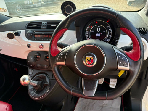 Boasting exceptionally low mileage for its age, this 2015 Abarth 595C T-Jet Turismo presents a compelling proposition. This Euro 6 compliant 1.4L petrol model, finished in the Turismo trim, has covered just 27057 miles. Its provenance is further strengthened by a full service history, with the last service completed on 12th June 2025 at 26795 miles. For your peace of mind, it comes with a 3 month warranty and a 12 month MOT provided on purchase. Notable features include rear parking sensors for easier manoeuvring, air conditioning to keep you comfortable, and the Blue&Me hands free system with Bluetooth connectivity for seamless phone integration.This Abarth 595C T-Jet Turismo offers impressive efficiency, achieving a highlight fuel economy of 47 mpg, which indicates it is more economical than many similar vehicles. Its low CO2 emissions also contribute to its appeal. This combination of performance, efficiency, and desirable features makes it a standout choice for those seeking a stylish and engaging driving experience.. 17in Alloy Wheels - 10-Spoke Diamond Finish, ABS - Anti-Lock Braking System, ASR - Anti-Slip Regulation, Air Conditioning, Airbags - Driver, Airbags - Drivers Knee, Airbags - Passenger, Airbags - Side, Airbags - Window, Blue&Me - Hands Free System, Body Coloured Side Skirts, Central Locking - Remote, Door Mirrors - Body Coloured, Door Mirrors - Electrically Adjustable and Heated, EBD - Electronic Brakeforce Distribution, ESP - Electronic Stability Programme, Electric Windows - Front, Electrochromatic Rear View Mirror, Floor Mats, Front Fog Lights, GSI - Gear Shift Indicator, Gear Knob - Alutex - Aluminium Fibre Glass, HBA - Hydraulic Brake Assist, Hill Holder, Hood - Black, Locking Fuel Cap, MSR - Motor Slip Regulation, Mechanical Brake Assist, Parking Sensors - Rear, Pollen Filter, Power Steering - Dualdrive Electric, Radio-CD and MP3 Player, Red Brake Calipers, Seats - Drivers Height Adjustment, Smoking Kit, Split Folding 50:50 Rear Seat, Sports Pedals, Steering Wheel - Blue&Me Controls, Steering Wheel - Height and Reach Adjustment, Steering Wheel - Leather, TTC - Torque Transfer Control, Tyre Pressure Monitor System, USB and AUX, Windows - Dark Tinted Privacy Glass. Full service history