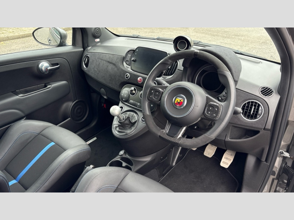 Abarth 695 1.4 T-Jet 180 Tributo 131 Rally 3dr 7" TFT instrument display with sports mode, 7" Touchscreen radio with navigation, bluetooth, USB, AUX, and DAB, Alcantara cockpit, Apple car play/Android Auto, Dualdrive PAS, eCall emergency call system, Garrett turbo, Rain and dusk sensors, Rear parking sensors, Sports button, Trip computer, Wakeup screen for 7" radio, Koni front and rear suspension with Frequency Selective Damping technology, Mechanical limited slip differential, Torque transfer control (TTC), Hifi by beats audio system, 3rd brake light, 695 badge and 131 Rally side sticker, Active record monza exhaust with rotated tips, Bi-Xenon headlights, Black front and rear bumper inserts, Black front and rear mouldings and door handles, Body colour mirror caps, Body coloured bumpers, Dark tinted rear quarter windows, Electric front windows, Front fog lights, LED daytime running lights, Rear window defroster, Rear wiper, Spoiler ad Assetto Variabile, Unique Body kit (side skirts, wheel arches, front bumper), Window integrated aerial with aluminium roof cap, 2 seat bench in 2nd row, Aluminium gearknob, Auto climate control, Driver/front passenger seat height adjustment, Floor mats, Front head restraints, Front passenger seat memory, Height adjustable steering wheel, High performance BMC air filter, Rear headrests, Sabelt cloth upholstery, Sabelt seats with blue insert and "131 Rally" inserts on headrest, Single front passenger seat, Sports steering wheel in leather and Alcantara with carbon fibre detailing, Stainless steel pedal covers, 240x11 mm Drilled rear brake discs, 305x28 mm Drilled and ventilated front brake discs, ABS, Driver and passenger airbags, Drivers knee airbag, ESP + ASR/MSR + HBA + Hill holder, Front side airbags, Head protection side airbag, Tyre pressure monitoring system, Window airbags, Alarm, Immobiliser, Power door locks, Remote central locking, Alcantara dashboard with Tributo 131 Rally, Fix and go kit
