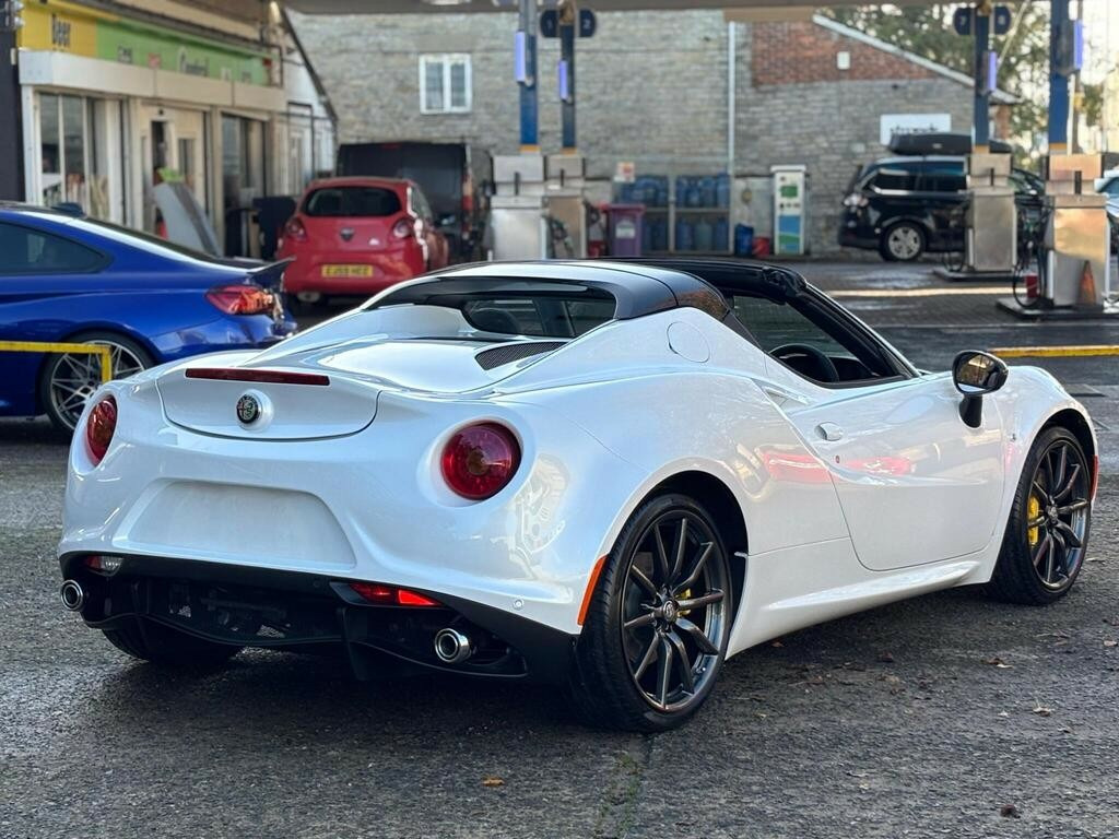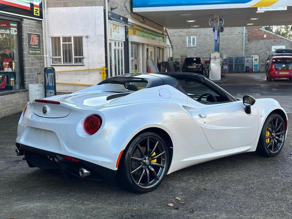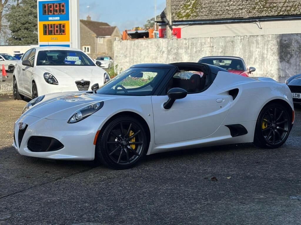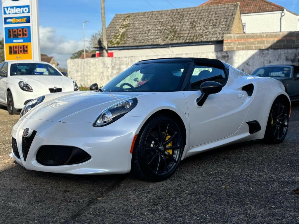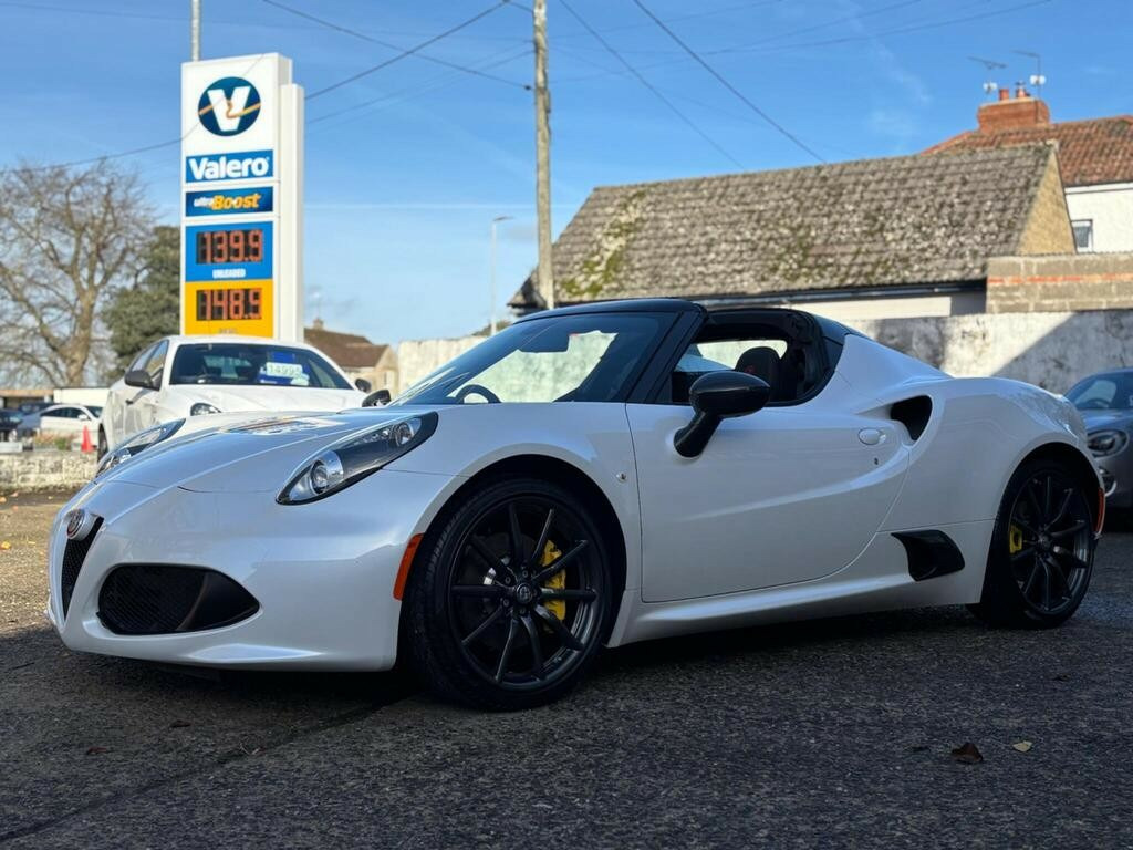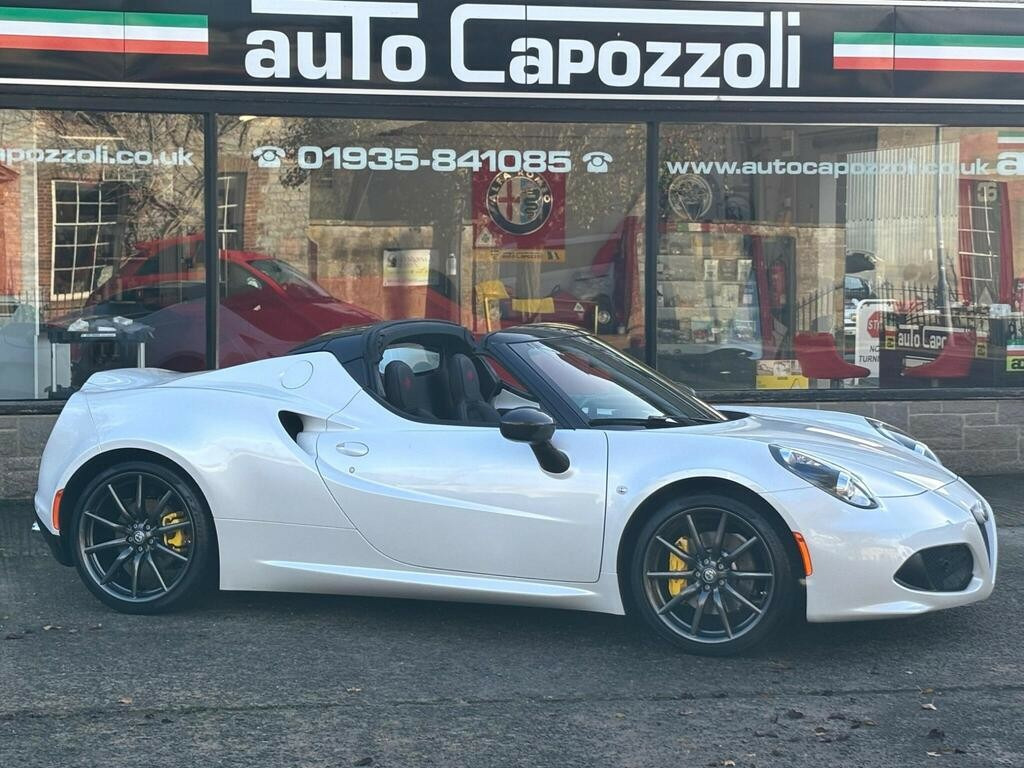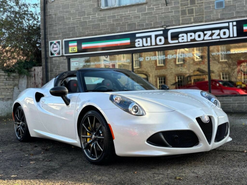 LIKE BRAND NEW A TRUE COLLECTORS STUNNING SUPER LOW MILEAGE 2019 ALFA ROMEO 4C 1750 TBi SPIDER, ONLY 1K MILES WITH FULL ALFA ROMEO/SPECIALISTS SERVICE HISTORY, CAMBELT/WATER PUMP CHANGED 988 MILES IN MAY 2025, GREAT SPEC WITH OVER £8K OPTIONAL EXTRAS, FINISHED IN GORGEOUS TRI -COAT MADREPERLA WHITE WITH HALF BLACK/RED STITCHING LEATHER TRIM, ANTI-STONE CHIPPING PROTECTION FILM FROM NEW, 18'' FRONT WITH 19'' REAR DARKENED MULTI SPOKE ALLOY WHEELS, YELLOW BREMBO BRAKE CALIPERS, RACING DOUBLE EXHAUST TAILPIPE, CARBON FIBRE MIRROR CAPS, CARBON FIBRE LATERAL AIR INTAKE, CARBON FIBRE ROLL BAR COVER, CARBON FIBRE REAR SPOILER, CARBON FIBRE FRONT WINDSCREEN SURROUND, REAR PARKING SENSORS, CRUISE CONTROL, BLACK LEATHER DASH WITH RED STITCHING, Alpine Radio with Voice Recognition and Bluetooth Hands-Free with Alfa Hi-Fi Sound System, Advanced Alfa D.N.A Driving Mode Selector, Flat Bottomed Black Leather Sport Steering Wheel with Paddle Shift Gear Change, Manual Air Conditioning, Electric Windows, Electric Door Mirrors, Remote Central Locking, Aluminium Sport Pedals, Original 4C Carpet Matts, Bi-Xenon Headlights, TPMS - Tyre Pressure Monitoring System, VDC - Vehicle Dynamic Control, Full service history, 2 seats, MADREPERLA WHITE HALF BLACK/RED STITCHING LEATHER, 4 owners, Upgrades - Cruise Control, Parking Sensors - Rear, 18in Front 19 in Rear Alloy Wheels - Multi-Spoke, Door Mirrors - Carbon Fibre, Exhaust Tailpipe - Racing Double, Leather - Microfibre - Black with Red Stitching, Lateral Air Intake in Carbon Fibre, Anti Stone Chipping Protective Film, Headlights - Bi-LED, Colour-Three Layer Madreperla White, 18in Front 19 in Rear Alloy Wheels - Multi-Spoke with Dark Finish, Dashboard - Leather - Black with Red Stitching, Brake Calipers - Yellow, Carbon Fibre Roll Bar Cover, Original 4C Red Car Cover, Original Bag For Soft Top, AUTO CAPOZZOLI ILCHESTER, Est Since 1959, Alfa Romeo/Abarth/Fiat Specialists, £59,995, fa hi-fi sound system, bluetooth handsfree, radio with web applications, abs - anti lock braking system, asr - acceleration skid control, bas - brake assistant, esc - electronic stability control, hill holder, remote central locking, vdc - vehicle dynamic control, volumetric anti-lifting alarm system, aluminium pedals and footrest, car care kit, carpets kit with embroidered logo, cup holder, floor mats - black with red stitching, manual air conditioning system, red car cover with alfa romeo 4c logo, seats - sports, steering wheel - height and reach adjustment, steering wheel - leather-sports, steering wheel - paddles, anti-roll bar - front, electronic q2 differential, full digital instrument panel with tft technology, tpms - tyre pressure monitoring system, headlights - bi-xenon