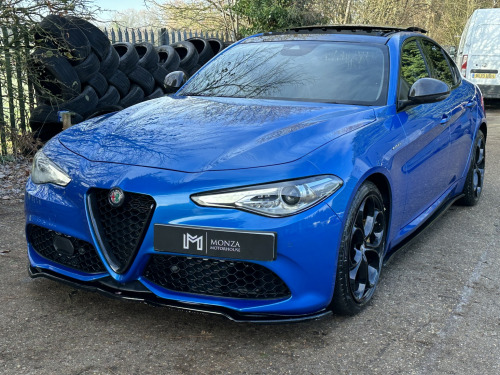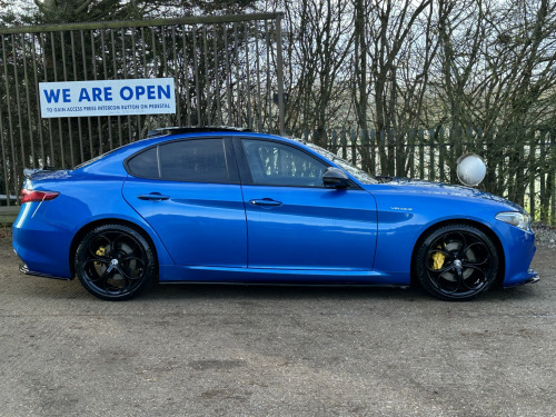 Alfa Romeo Giulia 2.0T Veloce 2020 - Pan Roof + Carbon + 19 Alloys, , Finished In Metallic Misano Blue,, 4 Door,, 2020/20, , 65000 Miles,, Full Service History,, 3 Former Keepers,, 2 Keys,, MOT - 14/01/2027,, , Panoramic Sunroof, Sat Nav, Apple CarPlay / Android Auto, Bluetooth, DAB Radio, Black Leather Interior, Heated Front Seats, Electric Adjustable Front Seats With Drivers Memory, Aluminium Interior Trim, Multifunctional Steering Wheel, Adaptive Cruise Control, Convenience Pack, Aluminium Kick Plate, Auto Xenon Headlights, Daytime Running Lights, Front And Rear Parking Sensors, Air Conditioning, Dual Zone Climate Control, Maxton Bodykit Consisting Of Front Splitter / Side Skirts / Rear Bumper Extensions, Carbon Fibre Front Grille, Carbon Fibre Style Door Mirror Trim, Carbon Fibre Boot Lid Spoiler, Privacy Glass, Yellow Brake Callipers, 19 Alloy Wheels,, , Excellent Condition Throughout, This Alfa Romeo Giulia Is Finished In Arguably The Best Colour Combination With A Huge Factory Specification Including The Must Have Pan Roof (Rare) / Apple CarPlay and Android Auto / Convenience Pack / 19 Quadrifoglio Alloy Wheels / Yellow Brake Calipers And Much More! Exterior Has Been Further Enhanced Thanks To The Maxton Bodykit And Additional Carbon Fibre Styling Providing Great Road Presence, Looks Stunning, Matching Pirelli Tyres Fitted All Round, Maintained Regardless Of Cost, Must Be Seen To Be Appreciated, Viewing By Appointment Only, HPi Clear, Nationwide Delivery Service Available,, , Warranty / Part Exchange Welcome