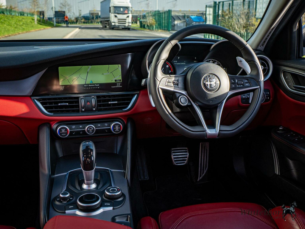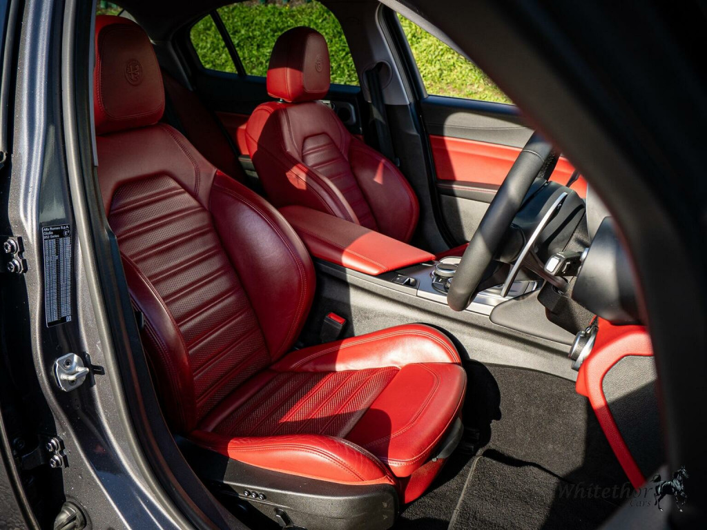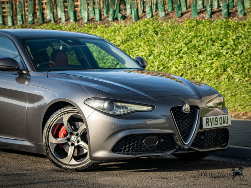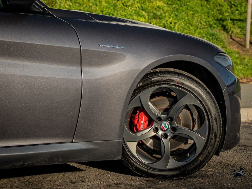 FREE DELIVERY WITHIN 200 MILES – Here we have a stunning Alfa Romeo Giulia Veloce finished in Vesuvio Grey Metallic. This being the Veloce comes with great spec from the factory, with things such as: Alfa Connect 3D Nav 8.8in Infotainment System – Apple CarPlay and Android Auto – Alfa DNA Driving Mode Selector – Bi-Xenon Headlights – Veloce Interior Pack – Heated Front Seats – Heated Steering Wheel – Privacy Glass – Gloss Black Window Surrounds – Headlight Washer System – Sports Leather Steering Wheel and Perforated Leather Gearstick – and more. , This example also benefits from optional extras such as: 18in Alloy Wheels - Dual 5 Spoke Diamond Cut – Climate Pack – Leather Sports Seats in Red – Mixed Fitment Tyres – and more. This car has had 7 services in total (5 Alfa Romeo, 2 Independent) last carried out at 51,000 miles. The MOT expires November 2026. 3 Month £2000 Claim Limit Warranty is included with the sale but the option to upgrade to a 12M, 24M, & 36M £5000 Claim Limit Nation Wide Premium Autoguard Warranty with Breakdown Cover is available. Multiple Finance Options, Competitive Part Exchange Prices. All Cars Are HPI, MotorCheck & Experian Clear. Further Vehicle Delivery Options Also Available. All Rights Reserved - Whitethor cars exercise all reasonable care and skill in providing you with vehicle information and data. The specification is attained through HPI, Experian & Autotrader VRM. Options Sold as packs may be shown individually, spec check is a guide so please contact us or physically verify any info that is crucial.