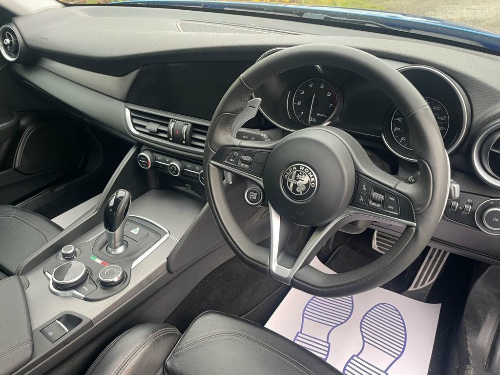 ALFA ROMEO GIULIA 2.0 T VELOCE SALOON PETROL AUTO IN MISANO BLUE , RARE COLOUR, AN ABSOLUTE BEAUTY, GENUINE 54842 MILES WITH A COMPREHENSIVE SERVICE RECORD, 18" UPGRADE QUADRIFOGLIO ALLOYS , XENON HEADLIGHTS, TWIN EXHAUSTS, ELECTRIC MIRRORS/WINDOWS, AUTO LIGHTS/MIRRORS, REMOTE CONTROL CENTRAL LOCKING, FLAT BOTTOM MULTI FUNCTION STEERING WHEEL WITH F1 STYLE PADDLE SHIFT, VOICE COMMAND, CRUISE , MULTIPLE DRIVE MODES, BLACK HEATED LEATHER MEMORY SEATS, DUAL CLIMATE CONTROL, HEATED STEERING WHEEL, SATELLITE NAVIGATION, BLUE TOOTH, DAB, USB CONNECTIVITY AND ISOFIX. 18in Alloy Wheels - 5 Hole Design - Dark, 40-20-40 Split Folding Rear Seats, 8 Speaker Audio System, 8in Wide Screen Colour Display, ABS - Anti Lock Braking System, Airbags - Driver, Airbags - Front Side, Airbags - Passenger, Airbags - Passenger Deactivation, Alfa Connect 3D Nav 8.8in Infotainment S, Alfa DNA Driving Mode Selector, Alfa Rotary Pad, Aluminium Door Sills, Aluminium Sports Pedals - Central Tunnel, Apple CarPlay and Android Auto, Auto Headlights, Auto Windscreen Wipers, Autonomous Emergency Braking - AEB, Bi-Xenon Headlamps - 25W LED DRL, Black Painted Interior Bezels, Brake Calipers - Black, Climate Control - Dual Zone, Convenience Pack, Cruise Control, DAB Radio, Dark Tinted R