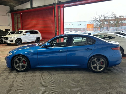 ALFA ROMEO GIULIA 2.0T Veloce Saloon 4dr Petrol Auto Euro 6 (s/s) (280 ps) in MISANO BLUE; COMES WITH; - BLACK LEATHER ALFA SPORTS SEATS - HEATED STEERING WHEEL - LANE ASSIST - RED BRAKE CALIPERS - FRONT HEATED SEATS - 18" ALLOY WHEELS - DAB RADIO - SATELLITE NAVIGATION - CRUISE CONTROL - LEATHER STEERING WHEEL WITH COMMANDS - PADDLE SHIFTERS - FRONT ELECTRIC SEATS WITH LUMBAR SUPPORT - DRIVE MODES - FRONT & REAR PARKING SENSORS - VOICE COMMAND - AUTO LIGHTS - AUTO WIPERS - AUTO FOLD MIRRORS - ULEZ FREE DISCLAIMER: THE MILEAGE OF THE CAR MIGHT INCREASE SLIGHTLY DUE TO TEST DRIVES We have completed a DVSA database check to establish whether any manufacturers' recall is pending on this vehicle. If a recall has been identified it is referred to in the vehicle description and we will use our best endeavours to ensure that the recall is completed before the time of sale. If there is no reference to a manufacturers' recall, it is based on the information supplied by the DVSA at the time of the check but customers are reminded that the DVSA database is only an indicative check and cannot be relied upon as wholly accurate. Customers are encouraged to independently verify the information before proceeding. Any recall detailed will in any event be dealt with by the manufacturer / manufacturers dealer free of charge. 18in Alloy Wheels - 10-Spoke Turbine, 40-20-40 Split Folding Rear Seats, 6-Way Power Adjustable Front Seats, 8 Speaker Audio System, ABS - Anti Lock Braking System, Airbags - Driver, Airbags - Front Side, Airbags - Passenger, Airbags - Passenger Deactivation, Alfa Connect 3D Nav 8.8in Infotainment S, Alfa DNA Driving Mode Selector, Alfa Rotary Pad, Aluminium Door Sills, Aluminium Sports Pedals - Central Tunnel, Auto Headlights, Auto Windscreen Wipers, Autonomous Emergency Braking - AEB, Bi-Xenon Headlamps - 25W LED DRL, Black Painted Interior Bezels, Brake Calipers - Black, Climate Control - Dual Zone, Cruise Control, DAB Radio, ESC - Electronic Stability Control, Electric Parking Brake, Ele