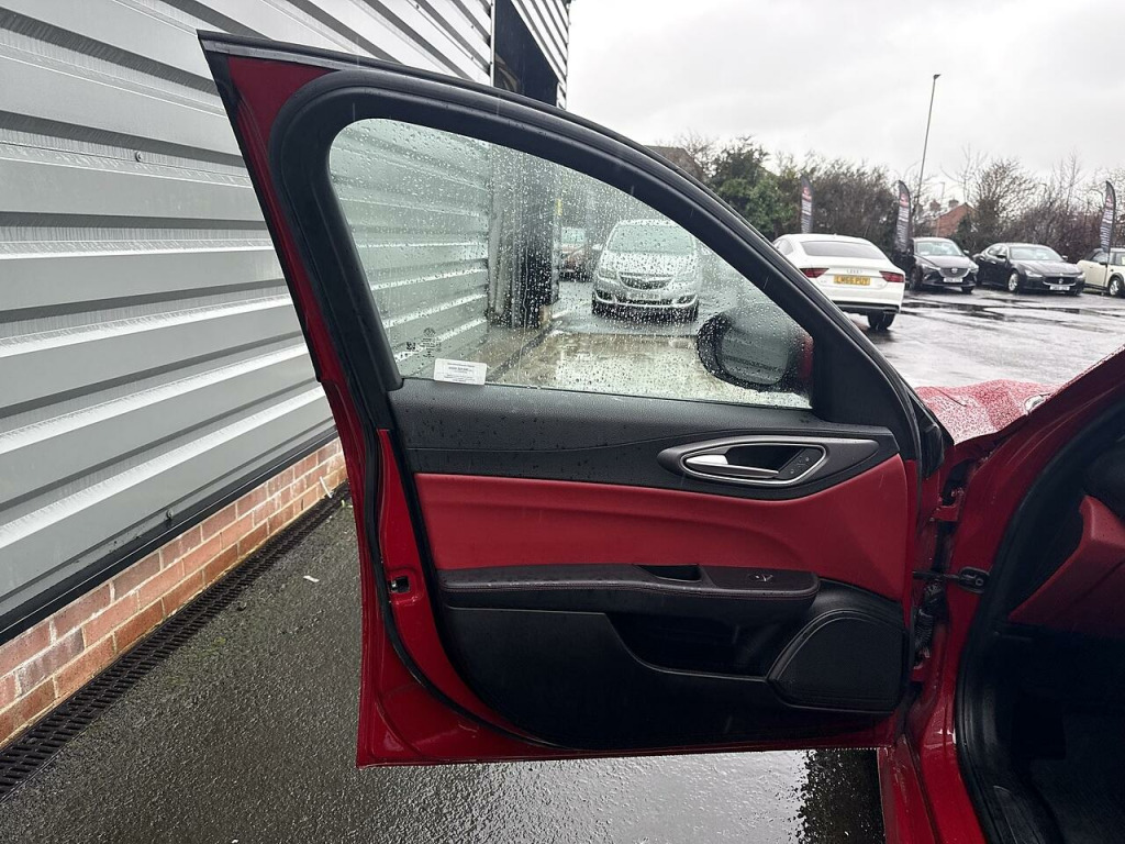 FINANCE FROM 9.9% APR WE WILL NOT BE BEAT ON RATE!This stunning car is prepared to the highest standard set in Alfa Red, with a contrasting Red leather interior. The car comes with service history, serviced recently at the following intervals: 9k, 17k, 21k, 22k, 27k, 32k, 35k, 40k, and will be serviced and Mot'd by ourselves. We sourced this vehicle directly from it's previous owner Paul, who had always wanted an Alfa Romeo Giulia and spent a long time searching for one in the exact specification . However, with his family continuing to grow, he’s now decided to move to a larger vehicle that better suits his changing needs. This Giulia has been well cared for and is now ready for its next owner to enjoy.The car boasts the following spec; Front and rear parking sensors,18'' Alloys,Dual climate control,Privacy glass,Heated seats,Heated steering wheel,Electric windows and mirrors,SAT NAV,Cruise control,DAB,Bluetooth,2 Keys,Apple carplay and android auto,Auto light and wipers.Finance calculator available on our website. Finance packages tailored to your needs, just ask one of our team to give you a quote. We offer hire purchase (HP) and PCP deals both at competitive rates.(+£149 Service support fee on all cars)Any car can be reserved with deposits from £100 subject to inspection. If upon your visit to our site, the car is not as described the deposit would be refunded in full immediately. We do price our cars as competitively as possible and because of this we sell cars very quickly. If you like the car chances are somebody else does too so don’t miss out and reserve now!We have chosen award-winning Autoguard Warranties as our extended warranty provider, as they offer comprehensive cover, with a variety of products to suit all your needs. Every car comes with a free 3-month standard warranty with a £300 claim limit. There is also the option to upgrade to a fully comprehensive premium with roadside assistance and breakdown 12-month warranty for £399, The extended warranty will cover you up to £2000 per claim. There is an additional fee. 8 Speaker Audio System, 8in Wide Screen Colour Display, Alfa Connect 3D Nav 8.8in Infotainment System, Apple CarPlay and Android Auto, DAB Radio, Alfa DNA Driving Mode Selector, Alfa Rotary Pad, Cruise Control, Forward Collision Warning - FCW, Front and Rear Parking Sensors, Lane Departure Warning - LDW, TPMS - Tyre Pressure Monitoring System, 18in Alloy Wheels - 5 Hole Design - Dark Finish, Brake Calipers - Black, Dark Tinted Rear Windows, Electric Windows - Front and Rear, Gloss Black Window Surrounds, Heated Washer Nozzles, Kick Plates - Aluminium, Power Folding Mirrors, Privacy Glass, Run Flat Tyres, Sports Diffuser and Dual Chrome Exhaust, Sports Front and Rear Bumpers, Tyre Repair Kit, Auto Headlights, Bi-Xenon Headlamps - 25W LED DRL, Headlights - Washer System, LED Tail and Brake Lamps, 40-20-40 Split Folding Rear Seats, Aluminium Door Sills, Aluminium Sports Pedals - Central Tunnel Cover and Front Door Mouldings, Auto Windscreen Wipers, Black Painted Interior Bezels, Climate Control - Dual Zone, Convenience Pack, Electrochromic Rear View Mirror, Engine Start Button on Steering Wheel, Front Passenger Sun Visor with Mirror, Gear Shift Paddles on Steering Wheel, Head Restraints - Third Rear, Heated Steering Wheel, Leather Multi-Function Steering Wheel, Power Seats Pack, Seats - Heated Front, Steering Wheel - Leather-Sports, Veloce Interior Pack, Power Steering, ABS - Anti Lock Braking System, Airbags - Driver, Airbags - Front Side, Airbags - Passenger, Airbags - Passenger Deactivation, Autonomous Emergency Braking - AEB, Electric Parking Brake, ESC - Electronic Stability Control, Integrated Braking System - IBS, Perimeter and Volumetric Alarm System, Remote Central Locking, Upgraded Braking System, 18in Alloy Wheels - 10-Spoke Turbine, Alfa Red, Leather Sports Seats - Red.