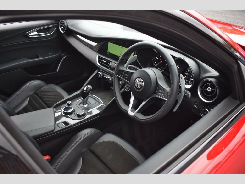 Rom Motors are thrilled to present this lovely Alfa Red Giulia Veloce Ti for sale. These are a sought after, and rare, version of the Giula Veloce with loads of carbon goodies, and similar styling to its bigger brother, the Quadrifoglio. The 2.0 turbocharged engine packs a punch, 280bhp through the rear wheels makes for an excellent driving experience. The vehicle has been serviced every year, some of which with Alfa Romeo, with independents maintaining the vehicle later in it's life. With only 3 owners from new, this lovely example will be freshly serviced for sale ready for the new owner to enjoy. 19in Alloy Wheels - Dark 5 Hole Quadrifo, 40-20-40 Split Folding Rear Seats, 8 Speaker Audio System, 8 Way Power and Heated Front Seats, 8in Wide Screen Colour Display, ABS - Anti Lock Braking System, Airbags - Driver, Airbags - Front Side, Airbags - Passenger, Airbags - Passenger Deactivation, Alfa Connect 3D Nav 8.8in Infotainment S, Alfa DNA Driving Mode Selector, Alfa Rotary Pad, Aluminium Sports Pedals - Central Tunnel, Ambient Lighting, Apple CarPlay and Android Auto, Auto Headlights, Auto Windscreen Wipers, Autonomous Emergency Braking - AEB, Black Headlining, Black Painted Interior Bezels, Brake Calipers - Red, Carbon Interior Trim, Carbon V Grille and Mirror Caps, Climate Control -