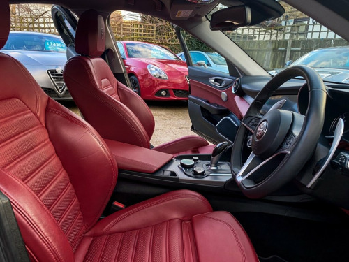 Huge spec car with over £3000 of factory extras finished in Volcano black with a full red leather interior (heated & electric)...great sounding Harmon Kardon sound system with 14 speakers, amp & subwoofer..convenience pack drivers vanity mirror & IP storage compartment..,..split folding rear seats..twin exhausts..keyless entry..ambient lighting..18" 5 hole dark grey stepped alloys with Brembo calipers..black TI front grill..privacy glass..twin exhausts.. satellite navigation with Bluetooth phone & music.. 8-speed seamless automatic gearbox with steering wheel paddles..low mileage + just serviced ..a very economical Alfa to own & run returning 40 MPG+ ULEZ compliant & just £165 road tax.....ask about our award-winning Ascari remaps (220 bhp & 530 lbs torque!) Quadrifoglio alloy wheels & carbon fibre appearance upgrades.. established for over 30 years ..all our cars are prepared to the highest of standards in our fully equipped workshop..we can arrange UK-wide delivery or click & collect for speed & convenience ... we are finance credit experts & have rates from just 5% fixed for up to 60 months...buy with confidence from Veloces..reserve now for just £99.. 18in Alloy Wheels - Dual 5-Spoke Diamond, 18in Alloy Wheels - 5 Hole Design - Dark, Brake Calipers - Red, Electric Windows - Front and Rear, Fix and Go Puncture Repair Kit, Gloss Black Window Surrounds, Heated Washer Nozzles, Power Folding Mirrors, Run Flat Tyres, Sport Pack, Sports Diffuser and Dual Chrome Exhaust, Sports Front and Rear Bumpers, Tyre Repair Kit, 40-20-40 Split Folding Rear Seats, 6-Way Power Adjustable Front Seats, Aluminium Sports Pedals - Central Tunnel, Auto Windscreen Wipers, Black Painted Interior Bezels, Climate Control - Dual Zone, Electrical Side Bolster Support, Electrochromic Rear View Mirror, Engine Start Button on Steering Wheel, Front Passenger Sun Visor with M