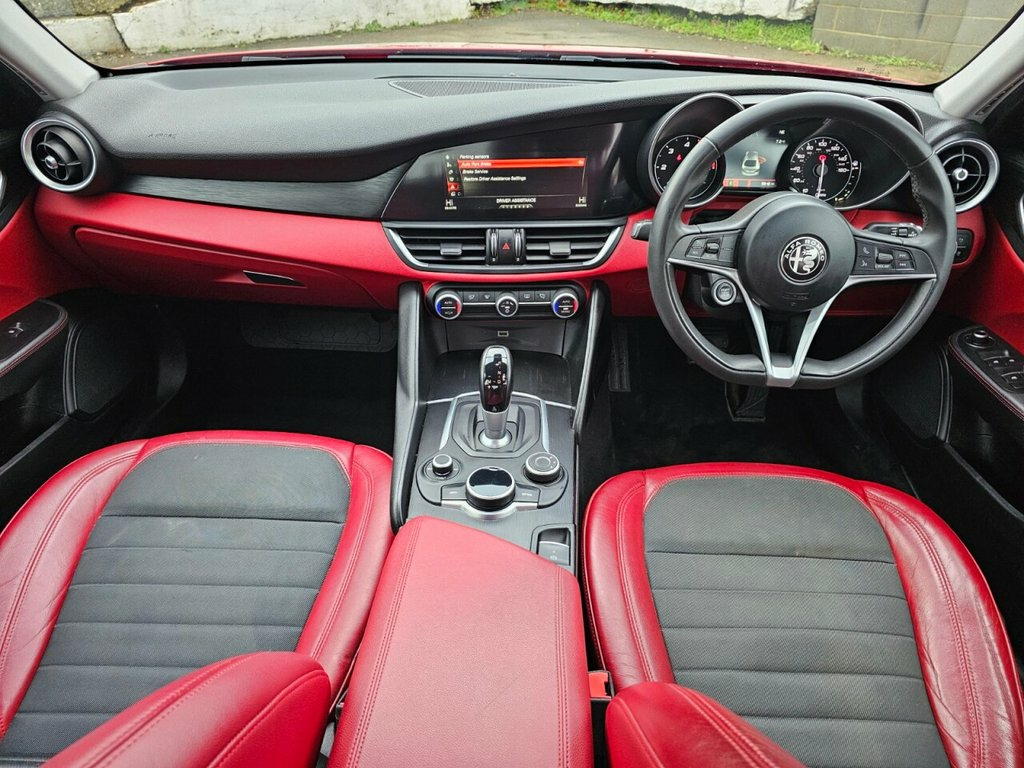2- Keys 9- Services Bluetooth Cruise Control DAB SAT NAV Dual Zone Climate Rear Parking Sensors Heated Seats Air Conditioning Auto Climate Control Automatic Lights Automatic Wipers 17in Alloy Wheels - 10-Spoke, 6 Way Manual Front Seats, 8 Speaker Audio System, ABS - Anti Lock Braking System, Airbags - Driver, Airbags - Front Side, Airbags - Passenger, Airbags - Passenger Deactivation, Alfa Connect 3D Nav 8.8in Infotainment S, Alfa DNA Driving Mode Selector, Alfa Rotary Pad, Auto Headlights, Auto Windscreen Wipers, Autonomous Emergency Braking - AEB, Black Painted Interior Bezels, Black Window Surrounds, Brake Calipers - Aluminium, Climate Control - Dual Zone, Cruise Control, DAB Radio, Dual Chrome Exhaust Tip, ESC - Electronic Stability Control, Electric Parking Brake, Electric Windows - Front and Rear, Engine Start Button on Steering Wheel, Fix and Go Puncture Repair