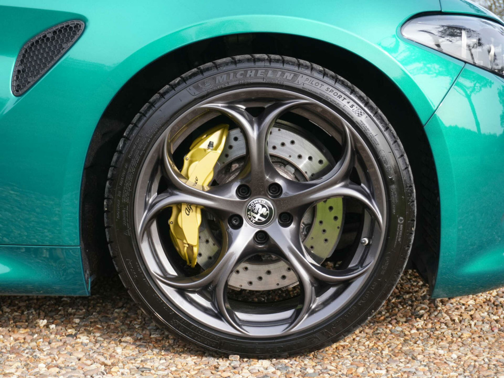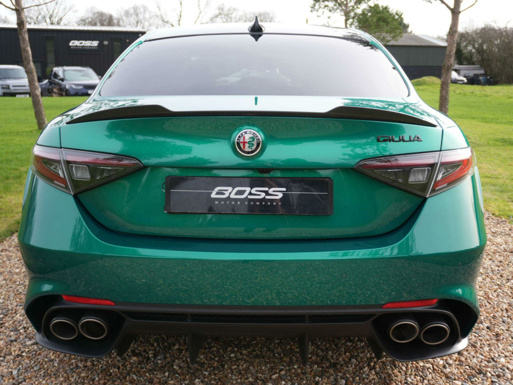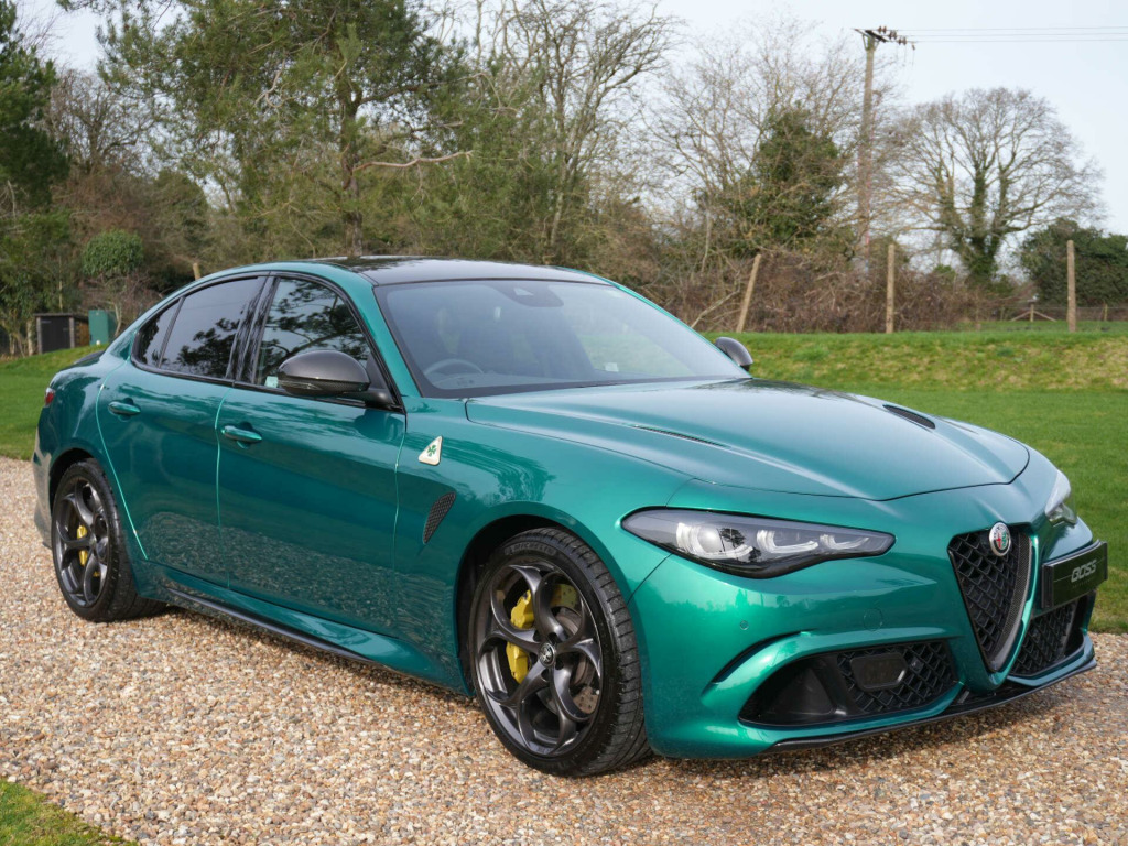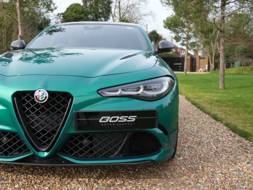 2024 Alfa Romeo Giulia Quadrifoglio 100th Anniversario7,000 miles - 1 owner from new - Full Alfa Romeo main dealer service history - Alfa warranty until 01/03/2027 - Balance of 4-year service plan remainingA limited-production model, this 100th Anniversario edition is 1 of 100 cars worldwide, with it estimated that fewer than 10 examples are in the UK.Finished in Montreal Green with Black leather interior and special Gold contrast stitching, this example features extensive carbon fibre components, performance enhancements and distinctive anniversary detailing throughout.Key details:- 2024 / 24 plate- 7,000 miles- 100th Anniversario edition (1 of 100 worldwide)- 2.9-litre twin-turbocharged V6 petrol engine (520 bhp)- 8-speed automatic transmission- Rear-wheel drive- Mechanical limited slip differentialSpecification highlights:- Montreal Green exterior- Black leather interior with Gold contrast stitching- Gold anodized brake calipers- Gold Quadrifoglio emblems on front wings- Exposed carbon fibre roof- Carbon fibre bonnet- Carbon fibre front splitter- Carbon fibre front grille- Carbon fibre side skirts- Carbon fibre rear spoiler- Carbon fibre mirror caps- 3D-effect carbon fibre interior trim- Dark 5-hole 19'' lightweight alloy wheels- Akrapovi? sports exhaust system- Matrix LED headlights- 12.3'' digital Virtual Cockpit- Harman Kardon sound system- Apple CarPlay & Android Auto- Reversing camera- Wireless phone charging- Adaptive cruise control- Blind spot monitoring- Heated front seats- Heated steering wheel- 6-way electrically adjustable driver's seat with memory- Keyless entry and startHistory & ownership:- 1 owner from new- Full Alfa Romeo main dealer service history- Balance of 4-year service plan- Alfa warranty until 01/03/2027Disclaimer: Whilst every effort has been taken to ensure accuracy of all our vehicles information, some inaccuracies may occur. It is important that you do not rely on this information but check with Boss motor company limited about any items which may affect your decision to buy this vehicle.Fuel consumption and power usage figures are for guidance only. Factors such as driving style, weather, loading, traffic conditions, all affect the rate at which fuel or power is consumed. It is likely that some journeys will result in greater fuel consumption for the same distance than other journeys. You would be wise to ensure the power range remains above 20% at all times., rapovic sports exhaust, montreal green, driver assistance pack plus, leather-alcantara - black with gold stitching, 100 anniversary tribute external logo, 100 anniversary tribute logo on leather ip, 12v power outlet, 19in alloy wheels - 5 hole- dark, 3d carbon deco, 40-20-40 split folding rear seats, 8 way power front seats with driver memory and 4 way power lumbar support, abs - anti lock braking system, aqs - air quality system, active cruise control, airbags - driver, airbags - passenger, alarm system with bonnet and intrusion protection, alfa active aero splitter, alfa active torque vectoring, alfa chassis domain control - cdc, alfa connect 3d nav 8.8in multi-touch infotainment system, alfa connect services, alfa dna pro with race mode, alfa sdc suspension - synaptic dynamic control, aluminium shift paddles on steering column, aluminium sports pedals and footrest, apple carplay and android auto, automatic high beam system, autonomous emergency braking aeb with pedestrian recognition, blind spot monitoring - bsm, brake calipers - gold painted, carbon fibre v grille surround, carbon mirror covers, carbon side skirt, climate control - automatic dual zone, connectivity - usb & aux-in armrest ports, dab radio, dark finish rear lights, dark tinted rear windows, driver side sun vision with mirror, dusk sensor, electric windows - front, electrically adjustable and power folding door mirrors, electrochromic rear view mirror, european maps, exterior door handle courtesy lights, fix and go puncture repair kit, floor mats, front airbag deactivation on passenger side, front courtesy map lamps, front and rear parking sensors, full led matrix trilobe headlights, full tft instrument cluster - 12.3in, functional led lighting, giulia badge dark miron, harman kardon audio, headlining - dark, heated steering wheel, heated washer jets, lane departure warning - ldw, monochrome central wheel caps, outside rearview mirror - electrochromic autodimming, passive entry, power seat bolster, power steering, quadrifoglio leather-alcantara flat bottomed sports steering wheel with carbon insert, rain sensing wipers, rear air vents, rear backup camera, rear spoiler - carbon fibre, rear usb port, remote central door locks, seat belt reminder, seats - heated front, specific 3rd central seatbelt for quadrifoglio, steering wheel controls, tpms - tyre pressure monitoring system, trunk hooks, usb - front centre console, window surrounds - gloss black, wireless charging pad