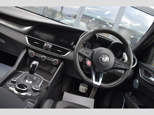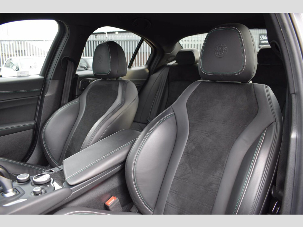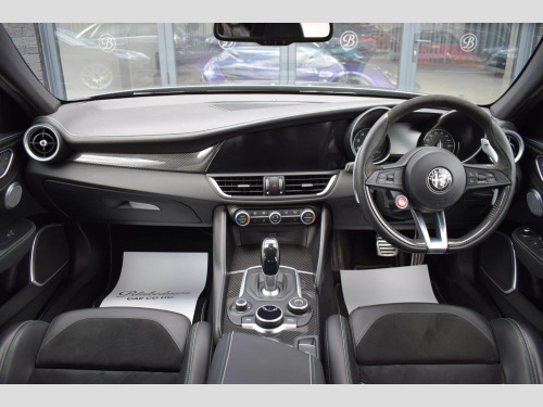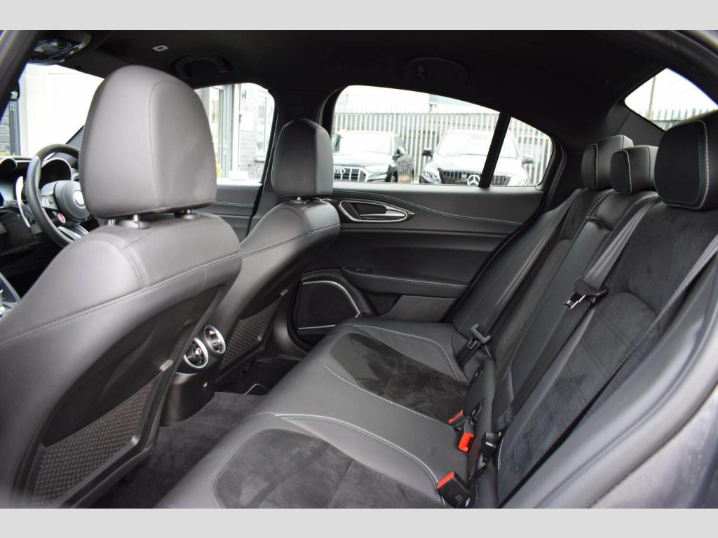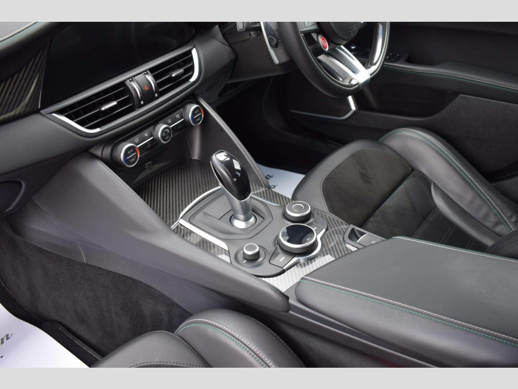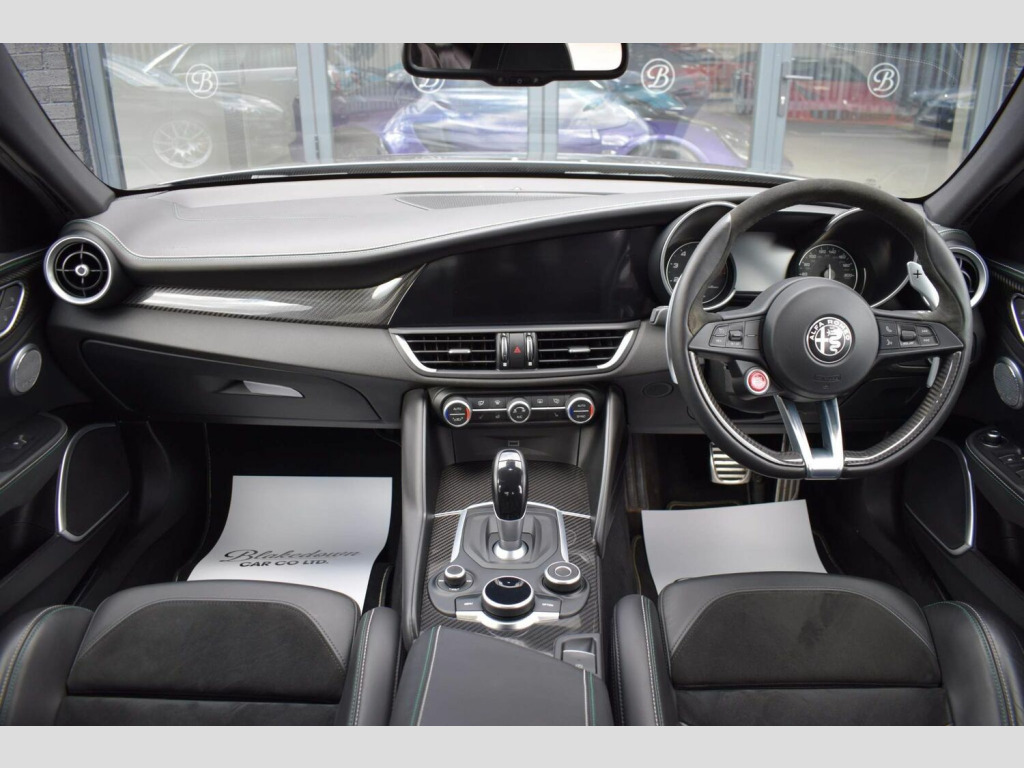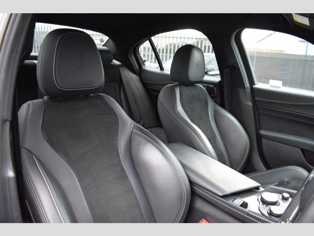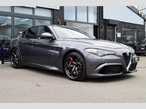 Alfa Romeo Guilia 2.9 V6 Bi-Turbo Quadrifoglio Auto finished in Versuvio Grey Metallic with black interior. Just 22800 miles covered by only two owners from new. Supplied with two keys and all correct documentation, handbooks etc and this car has been subjected to our usual strict pre delivery inspection and preparation process ensuring all cosmetic and mechanical elements are in good order. Totally standard with the exception of a Stage 1 map by CelticTuning to produce a safe but impressive 598bhp with dyno printout present. Main service history present and this car comes with a great specification with some sought after optional extras fitted totalling around £4000 which include: Painted Brake Calipers, 19in Alloy Wheels - 5 Hole- Dark, Metallic Paint, Carbon/Alcantara Flat Bottom Sports Steering Wheel, Black Leather Sports Seats with White/Green Stitching, Convenience Pack, Electric Adjusting Seats and Harman Kardon Audio. Other equipment includes: Active Cruise Control, Alfa Connect 3D Nav 8.8in Infotainment System, Alfa SDC Suspension - Synaptic Dynamic Control, Ambient LED Lighting - Front and Rear, Apple CarPlay and Android Auto, Bi-Xenon Headlights, Carbon Fibre Interior Accents, Convenience Pack, DAB Radio, Dark Finish Giulia Badge, Forward Collision Warning - FCW, Lane Departure Warning - LDW, Quadrifoglio Badge, Rearview Parking Camera with Dynamic Grid Lines, TPMS - Tyre Pressure Monitoring System, USB - Front Centre Console, Window Surrounds - Black, Wireless Charging Pad and more.
