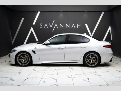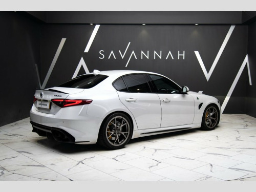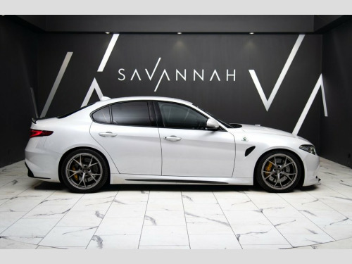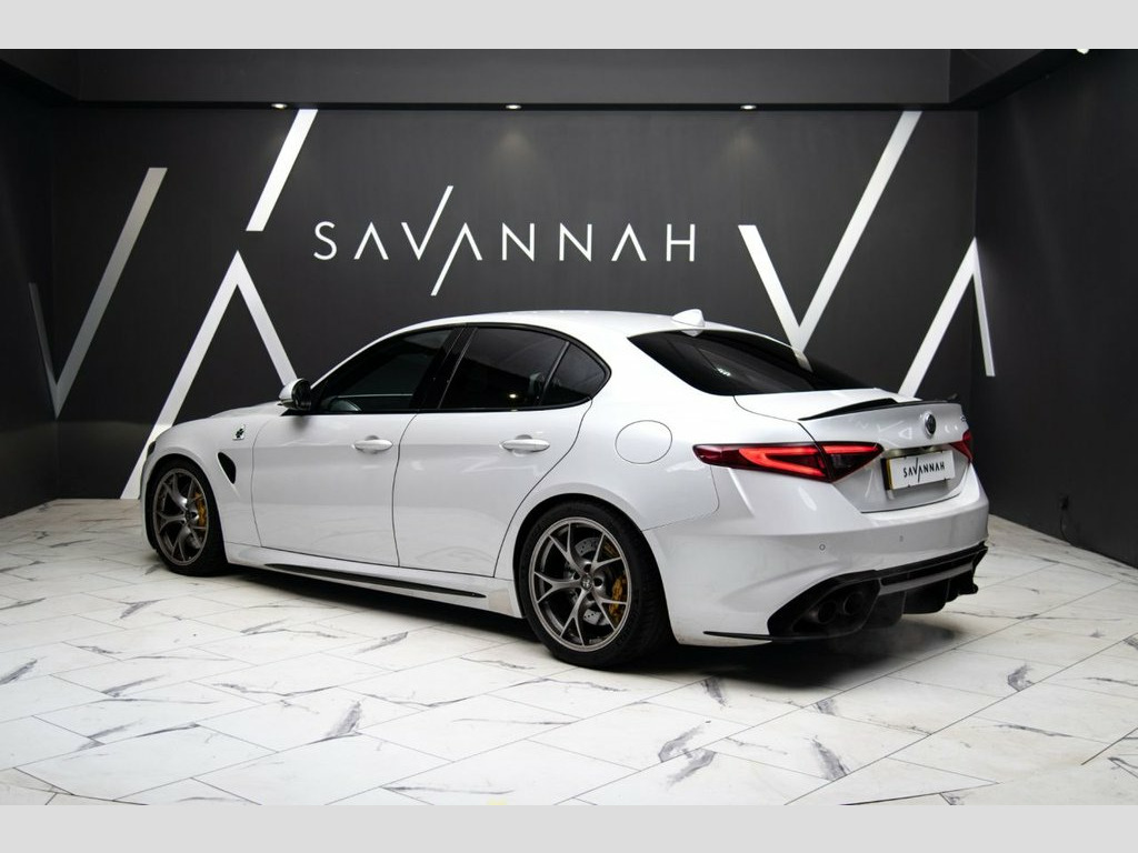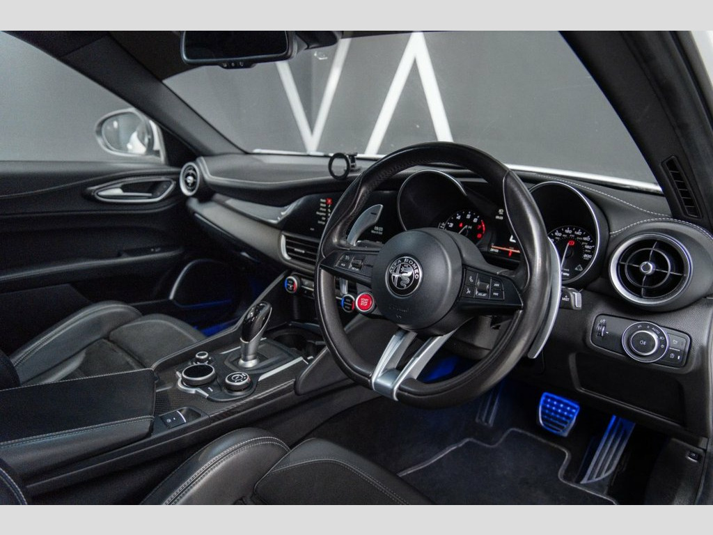 This car, the Alfa Romeo Giulia 2.9 V6 Bi-Turbo Quadrifoglio, is a masterclass in Italian performance engineering, combining exhilarating power with precision handling and refined luxury. Its Trofeo White exterior is complemented by striking 19in Quadrifoglio alloy wheels, aggressive front grille and bumper styling, and signature Alfa Active Aero Splitter for enhanced aerodynamic performance. The rear is finished with a functional diffuser and quad sports exhaust tailpipes, while the LED tail and brake lamps provide a modern, commanding look. Inside, the cabin blends driver-focused ergonomics with sumptuous materials, featuring sports leather multifunction steering wheel, Aluminium sports pedals, carbon fibre dashboard inserts, and ambient lighting that enhances the cockpit ambiance. Comfort and convenience are assured with dual-zone climate control, electric front and rear windows, and Power Seats Pack with 6-way adjustable front seats for ultimate support. Advanced tech includes the Alfa Connect 3D Nav 8.8in infotainment system, Apple CarPlay and Android Auto, 7in TFT colour display, and rear-view camera. On the performance front, the 2.9-litre V6 bi-turbo engine produces a thrilling 510 PS, harnessed through the Alfa DNA Pro with Race Mode, Alfa Active Torque Vectoring, Alfa Active Suspension System, and Chassis Domain Control (CDC) to deliver razor-sharp handling and precise road feedback. Safety and driver-assist features include autonomous emergency braking (AEB), forwa Leather-Alcantara - Black with Black Int, 19in Alloy Wheels - Quadrifoglio, 2x Rear Seatbelts, 6 Way Manual Front Seats, 7in TFT Colour Cluster Display, 8 Speaker Audio System, ABS - Anti Lock Braking System, Airbags - Driver, Airbags - Front Side, Airbags - Passenger, Airbags - Passenger Deactivation, Alfa Active Aero Splitter, Alfa Active Suspension System, Alfa Active Torque Vectoring, Alfa Chassis Domain Control - CDC, Alfa Connect 3D Nav 8.8in Infotainment S, Alfa DNA Pro with Race Mode, Alfa Rotary Pad, Aluminium Sports Pedals - Central Tunnel, Ambient Lighting, Apple CarPlay and Android Auto, Auto Headlights, Auto Windscreen Wipers, Autonomous Emergency Braking - AEB, Bi-Xenon Headlig