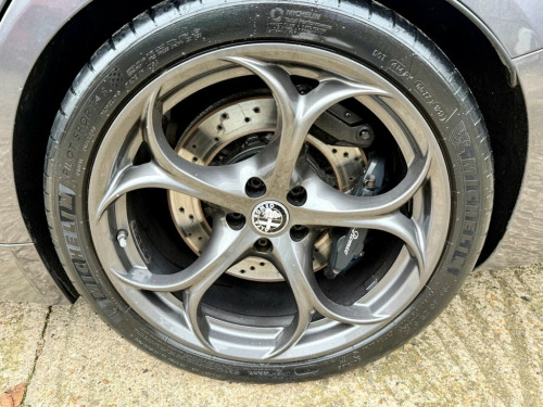 Veloces Are Very Pleased To Be Able To Offer For Sale This Stunning Quadrifoglio Giulia.. Finished In The Striking Vesuvio Grey With Black Leather & Alcantara Sports Seats. Upgrade 19 Dark Finished QV Alloys With Premium Mitchelin Tyres & Red Brembo Brake Callipers ...Ambient Interior Lighting. Convenience Pack With Rear Reverse Camera & Blind Spot Monitors. Carbon Pack (Mirrors & Grill) + Carbon Fibre Interior Detailing. Power Seats With 3 Stage Memory. Winter Pack With Heated Seats & Mirrors. The Car BENEFITS FROM JUST HAVING MAJOR AUX BELT SERVICE INCLUDING NEW WATERPUMP & RADIATOR..A PROPERLY SORTED QV THAT WANTS FOR NOTHING. NOT TOO BE MISSED. Competizione Red, Silverstone Grey, 19in Alloy Wheels - 5 Hole, 19in Alloy Wheels - Dark Quadrifoglio Al, Dark Tinted Rear Windows, 19in Alloy Wheels - Quadrifoglio, 2x Rear Seatbelts, 6 Way Manual Front Seats, 7in TFT Colour Cluster Display, 8 Speaker Audio System, ABS - Anti Lock Braking System, Airbags - Driver, Airbags - Front Side, Airbags - Passenger, Airbags - Passenger Deactivation, Alfa Active Aero Splitter, Alfa Active Suspension System, Alfa Active Torque Vectoring, Alfa Chassis Domain Control - CDC, Alfa Connect 3D Nav 8.8in Infotainment S, Alfa DNA Pro with Race Mode, Alfa Rotary Pad, Aluminium Sports Pedals - Central Tunnel, Ambient Lighting, Apple CarPlay and Android Auto, Aut