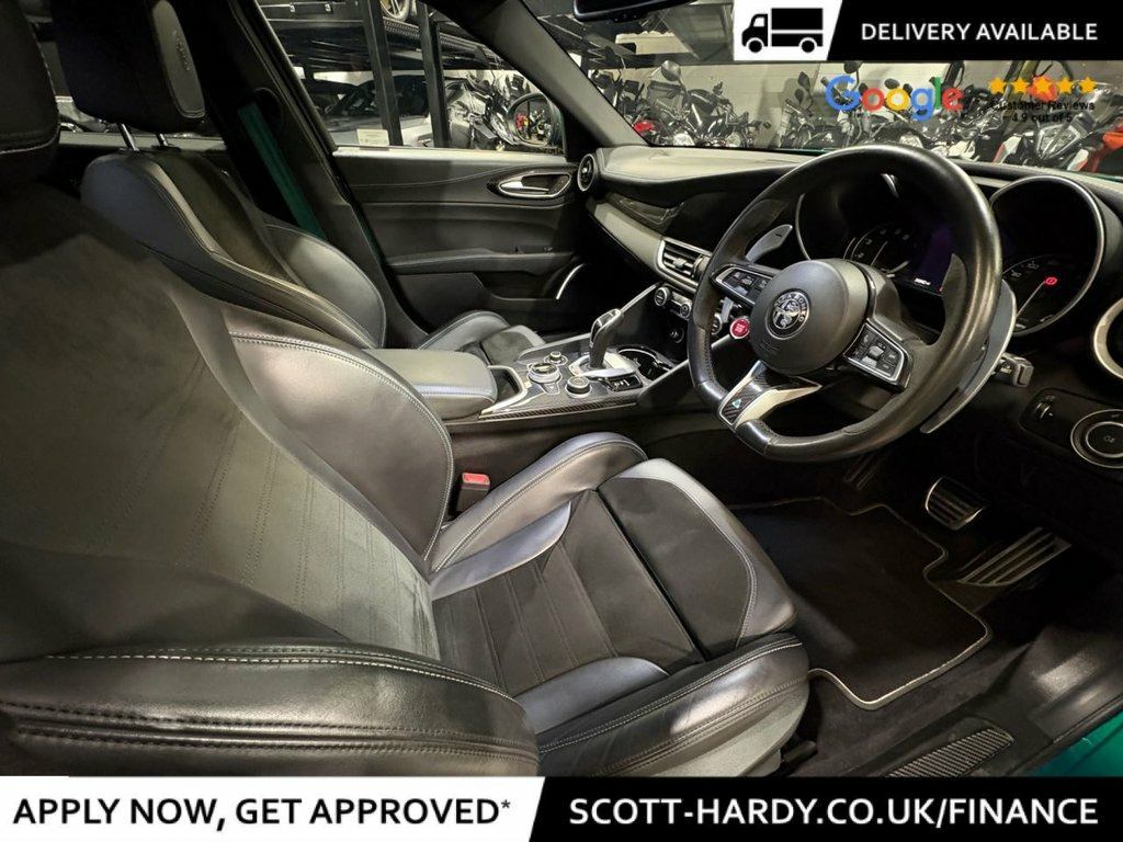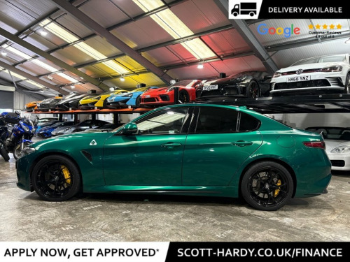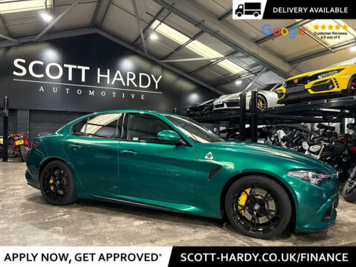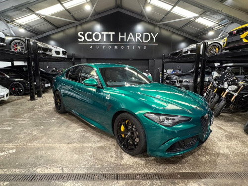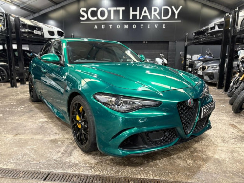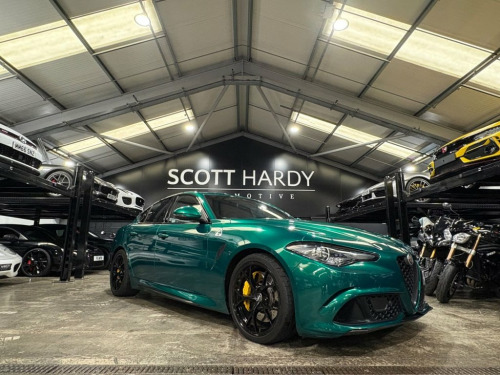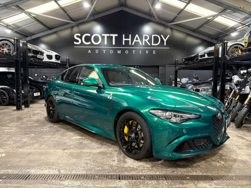 Scott Hardy automtive are proud to present this stunning ALFA ROMEO GIULIA 2.9 Bi-Turbo Quadrifoglio. Some cars whisper. This one roars. Introducing the Alfa Romeo Giulia Bi-Turbo Quadrifoglio, finished in the electrifying Montreal Green—a colour that pulses with heritage and adrenaline. Beneath its sculpted carbon fibre bonnet lies a 2.9-litre twin-turbo V6, unleashing 510 horsepower of pure Italian fury. Every heartbeat of this machine is tuned for passion, precision, and performance. Its stance is aggressive, its soul unmistakably Alfa. 19-inch ultra-light alloy wheels grip the road with purpose, while yellow brake calipers flash like warning signs to lesser machines. Carbon fibre side skirts, rear spoiler, and active aero splitter slice through the air with race-bred intent. Inside, the Quadrifoglio leather and Alcantara flat-bottomed steering wheel—with carbon insert—puts control at your fingertips. Advanced driver aids like active blind spot monitoring, lane keeping assist, and a rear-view camera with dynamic grid lines ensure confidence at every turn. The cold climate pack adds comfort to the chaos, while the mechanical limited slip differential delivers razor-sharp handling that begs to be pushed. This isn't just a car. It's a declaration. A symphony of speed, style, and soul. Alfa Romeo Giulia Quadrifoglio. Drive the legend. Feel the pulse. Driver Assistance Pack Plus, White and Green Seat Stitching, 12v Power Outlet, 19in Alloy Wheels - Dark - Lightweight, 40-20-40 Split Folding Rear Seats, 6-Way Power Driver Seat with Memory and , 6-Way Power Passenger Seat with 4 Way Lu, 7in Colour TFT Instrument Cluster, ABS - Anti Lock Braking System, AQS - Air Quality System, Active Cruise Control, Airbags - Driver, Airbags - Passenger, Alarm System with Bonnet and Intrusion P, Alfa Active Aero Splitter, Alfa Active Torque Vectoring, Alfa Chassis Domain Control - CDC, Alfa Connect 3D Nav 8.8in Multi-Touch In, Alfa Connect Services, Alfa DNA Pro with Race Mode, Alfa SDC Suspension - Synaptic Dynamic C, Aluminium Shift Paddles on Steering C