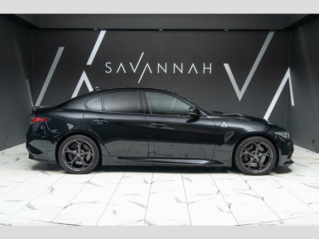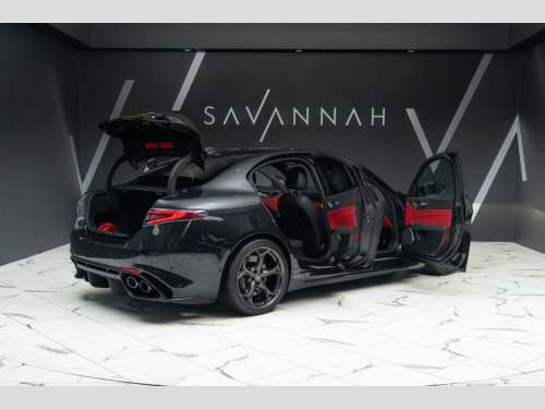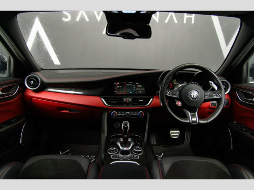 This ALFA ROMEO GIULIA 2.9 V6 Bi-Turbo Quadrifoglio represents the pinnacle of Italian performance engineering, delivering a breathtaking 510ps through a chassis honed for precision, passion and pure driver engagement. Finished in the striking Vulcano Black (£695.00) with 19in Dark 5-Hole Alloy Wheels (£695.00), black window surrounds and darkened rear lights, this Quadrifoglio commands presence with its aggressive stance, carbon-fibre accents and iconic cloverleaf heritage. The interior is a masterclass in sporting luxury, featuring Leather–Alcantara sports seats in Black with Red Stitching and Red Lower Dash (£395.00), carbon fibre trim, a Quadrifoglio flat-bottom steering wheel, aluminium pedals and a 7in TFT cluster for an immersive cockpit experience. Performance is sharpened by Alfa DNA Pro with RACE mode, Alfa SDC active suspension, bi-xenon headlights, breath-taking aluminium shift paddles, and the advanced Integrated Braking System, while comfort and control come via the Electric Seats Pack, Convenience Pack, and a suite of connected technologies including the 8.8in Alfa Connect 3D Navigation, Wireless Charging Pad, and Apple CarPlay/Android Auto (£300.00). Further enhancements include Active Cruise Control (£890.00), Dark Tinted Rear Windows (£275.00) and Ambient LED Lighting (£75.00), taking the total value of extras well above £2,000. This Quadrifoglio is not merely a sports saloon—it is a statement of in Vulcano Black, Leather-Alcantara - Sports Seats - Black, 19in Alloy Wheels - 5 Hole- Dark, Metallic paint, Electric seats pack (Quadrifoglio) , 12v Power Outlet, 19in Alloy Wheels - Quadrifoglio Lightwe, 40-20-40 Split Folding Rear Seats, 7in Colour TFT Instrument Cluster, ABS - Anti Lock Braking System, Active Cruise Control, Airbags - Driver, Airbags - Passenger, Alarm System with Bonnet and Intrusion P, Alfa Connect 3D Nav 8.8in Infotainment S, Alfa Connect Services, Alfa Connected Box, Alfa DNA Driving Modes - including RACE , Alfa SDC Suspension - Synaptic Dynamic C, Aluminium Shift Paddles on Steering Colu, Aluminium Sports Pedals and Footrest, Ambient LED Lighting - Front and Rear, Ap
