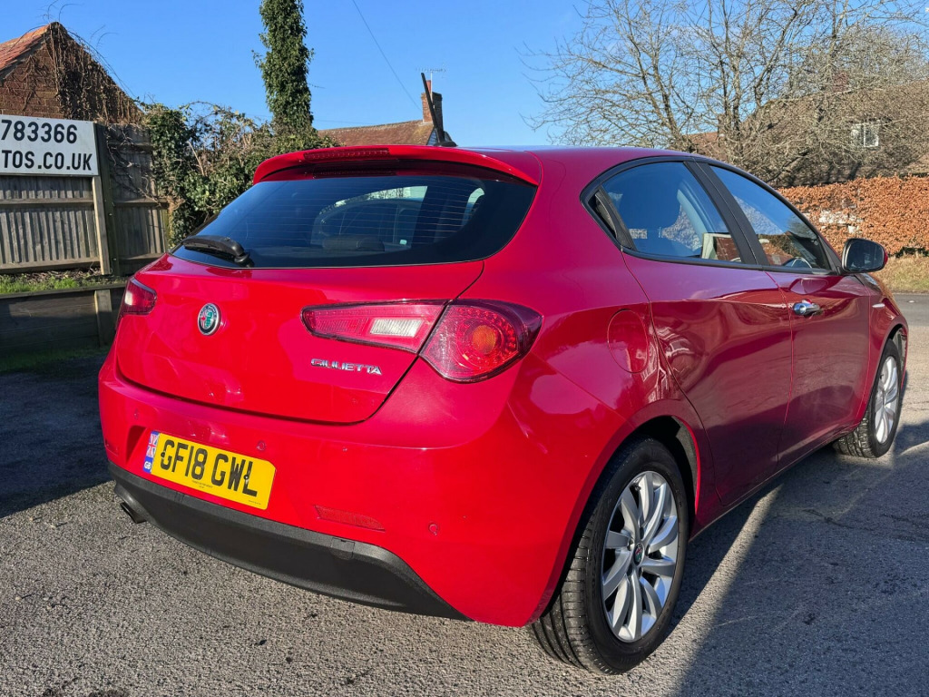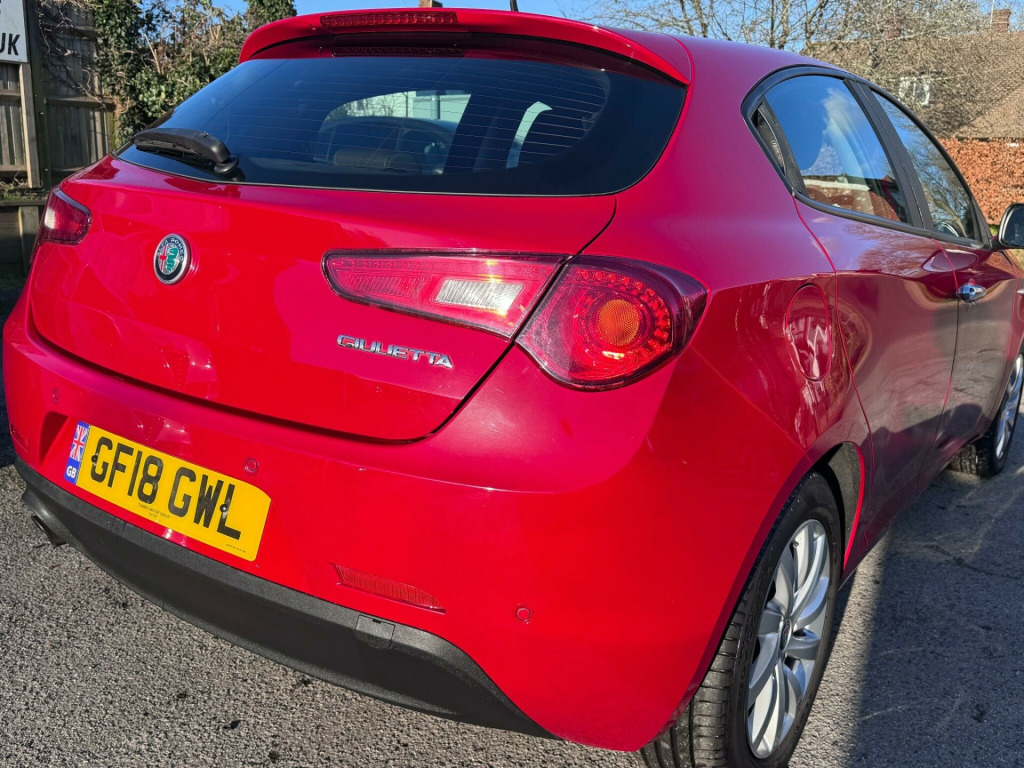Lovely late low mileage example, with only 2 owners, previously serviced by us, full Alfa main dealer and specialists history, 2 keys, all our Alfas come with a new MOT, new cambelt + water pump(if Due) , a 6 month in-house comprehensive warranty. We are an Alfa Romeo specialist and pride ourselves on our reputation, check out our 100+ 5 star reviews fa code immobiliser and alarm system, parking sensors - rear, giulietta cloth - black-anthracite, 16in alloy wheels - turbine, 6 airbags - driver-passenger-front side and window, 60-40 split folding rear seats, airbags - passenger deactivation, alfa code immobiliser, alfa dna driving mode selector, bluetooth handsfree, body coloured bumpers, climate control - manual, dab radio, daytime running lights - led, eps - electric power assisted steering, electric windows - front and rear, electrically adjustable and heated body coloured wing mirrors, electronic key with remote central locking and boot release, electronic q2 differential, floor mats, isofix attachments for child seat protection, leather steering wheel with phone and radio controls, matte black trim inserts, multifunctional display and trip computer, rear cluster lights - led, rear spoiler, safe lock, seats - drivers height adjustment, space saver spare steel wheel - 16in, sports dials with red illumination, tpms - tyre pressure monitoring system, uconnect 5in colour touchscreen infotainment system, vdc - vehicle dynamic control
