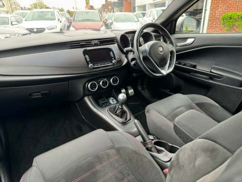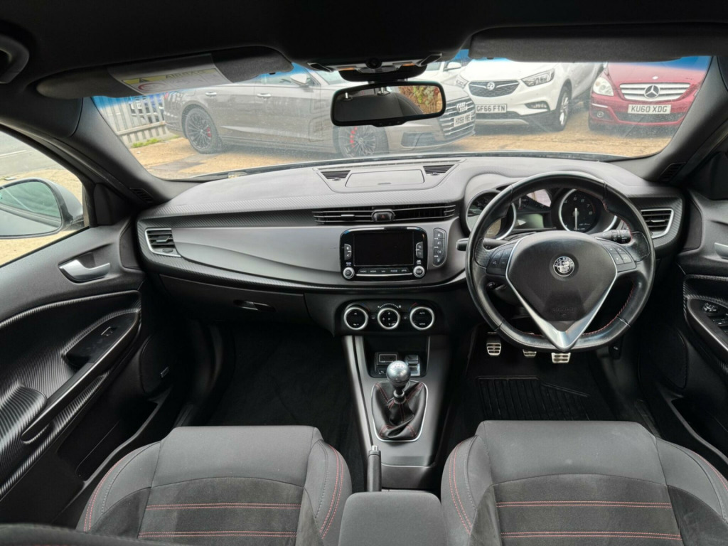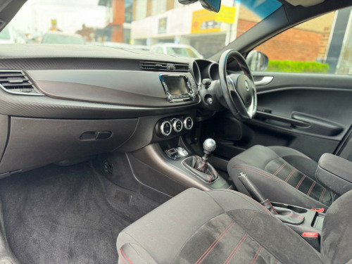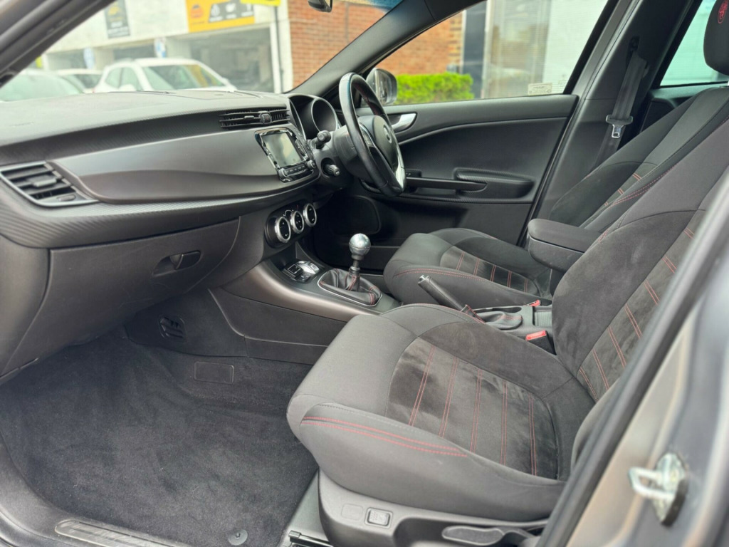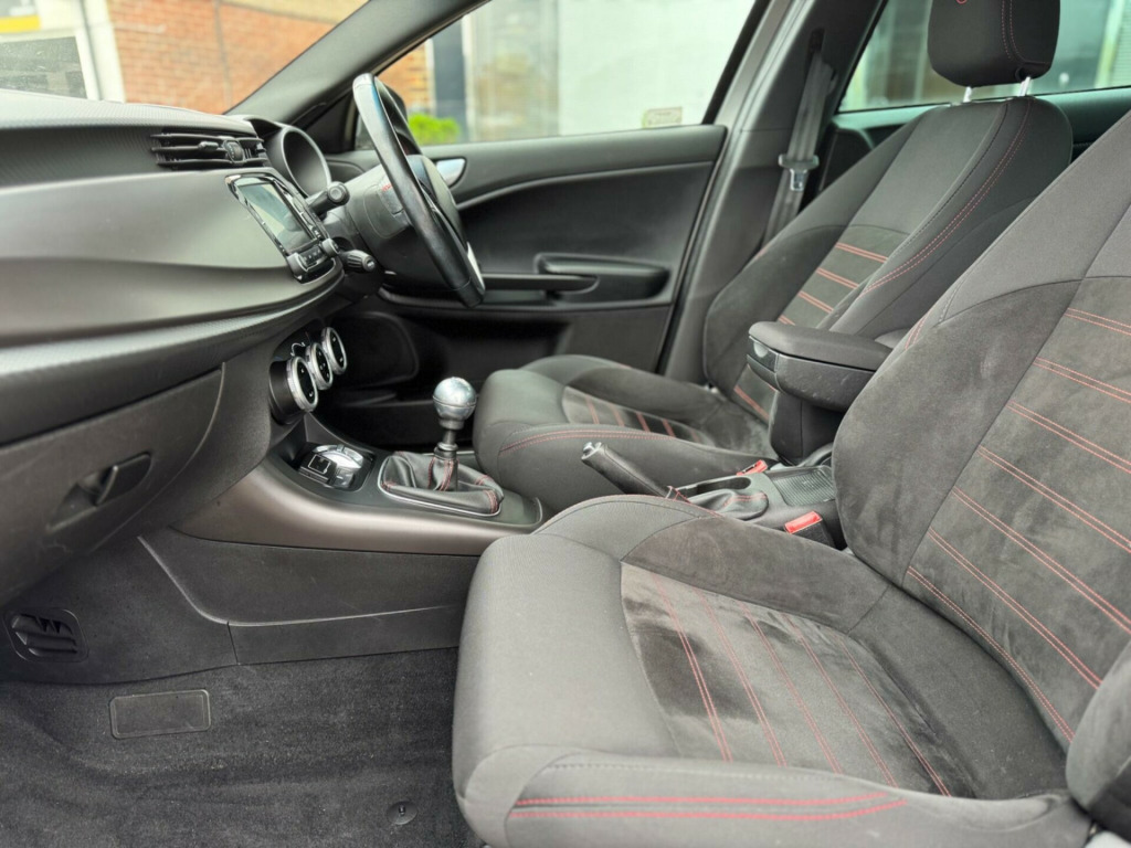 PARKING SENSOR ,BUILT IN SATNAV BLUETOOTH CONECTIVITY SERVICE HISTORY, NEW CLUTCH JUST FITTED WELCOME PART EX in alloy wheels - 5 hole design - dark finish, fabric and alcantara sports seats - black with red stitching, 18in alloy wheels - 5 hole design, 6 airbags - driver-passenger-front side and window, 60-40 split folding rear seats, airbags - passenger deactivation, alfa code immobiliser and alarm system, alfa dna driving mode selector, armrest - front with storage, armrest - rear with storage, bluetooth handsfree, body coloured bumpers, brembo braking system with alfa romeo red brake callipers, climate control - automatic dual zone, cruise control, dab radio, dark anthracite exterior finishing, dark flair fire trim inserts, dashboard surround and door panels in carbon fibre finish, daytime running lights - led, door mirrors - dark anthracite, door mirrors - electrically adjustable and heated, eps - electric power assisted steering, electric windows - front and rear, electronic key with remote central locking and boot release, electronic q2 differential, enlarged exhaust finish, flat-bottomed sports leather steering wheel with red stitching, floor mats, front fog lights, front and rear parking sensors, headlights - carbon effect, headlining - darkened interior, isofix attachments for child seat protection, kick plates - aluminium, multifunctional display and trip computer, parking sensors - rear, privacy glass, rear cluster lights - led, rear spoiler, safe lock, seats - drivers height adjustment, seats - front electric lumbar adjustment, seats - passenger height adjustment, side skirts, space saver spare steel wheel - 17-18in, sports dials with white illumination, sports front splitter and rear dam with alfa red detailing, sports pedals - aluminium, storage - front seat back pockets, suspension - sports, tpms - tyre pressure monitoring system, uconnect 6.5in colour touchscreen navigation, vdc - vehicle dynamic control, visibility pack