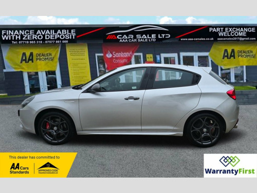 **AAA CAR SALES DARLINGTON LTD HAVE THE PLEASURE TO PRESENT THIS ALFA ROMEO GIULIETTA 1.4 TB MultiAir Speciale Hatchback 5dr Petrol Manual Euro 6 (s/s) (150 bhp) IN SILVERSTONE GREY PAINT. FULL SERVICE HISTORY - SERVICED AT 9K, 18K, 27K, 37K, 44K, 54K, 63K, 74K AND A FULL SERVICE BY OUR TEAM AT 81K, FRESH MOT INCLUDED+2 KEYS + 12 MONTHS AA BREAKDOWN COVER ** ALL OUR CARS GO THROUGH 72 POINT INSPECTION,ALL OF OUR CARS COME WITH 12 MONTHS AA BREAKDOWN COVER, UP TO 12 MONTH MOT WITHOUT ADVISORIES,INTERIM SERVICE,HPI CHECKED VIA EXPERIAN,3 MONTHS WARRANTY WITH THE OPTION TO UPGRADE ***AUTOTRADER CUSTOMER SERVICE AWARD 2019,2020,2021, 2022, 2023 & 2024 YEAR ON YEAR***, WE ARE OPEN 7 DAYS A WEEK FOR YOUR CONVIENIENCE,CALL 01325 511665 OR EMAIL US AT [email protected] or visit our website www.aaa-carsales.co.uk, YOU CAN BUY WITH FULL CONFIDENCE FROM AAA CARS CHECK OUR AUTOTRADER REVIEWS FOR FULL PEACE OF MIND, 18in Alloy Wheels - 5 Hole Design, 6 Airbags - Driver-Passenger-Front Side , 60-40 Split Folding Rear Seats, Airbags - Passenger Deactivation, Alfa Code Immobiliser and Alarm System, Alfa DNA Driving Mode Selector, Armrest - Front with Storage, Armrest - Rear with Storage, Bluetooth Handsfree, Body Coloured Bumpers, Brembo Braking System with Alfa Romeo Re, Climate Control - Automatic Dual Zone, Cruise Control, DAB Radio, Dark Anthracite Exterior Finishing, Dark Flair Fire Trim Inserts, Dashboard Surround and Door Panels in Ca, Daytime Running Lights - LED, Door Mirrors - Dark Anthracite, Door Mirrors - Electrically Adjustable a, EPS - Electric Power Assisted Steering, Electric Windows - Fro