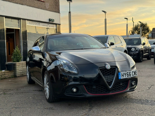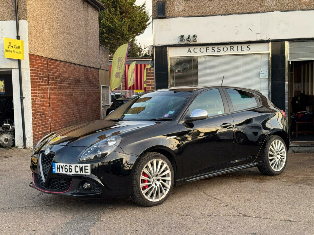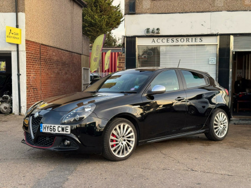 Discover this 2016 Alfa Romeo Giulietta TB Speciale, a stylish and capable hatchback. This particular model boasts a 1.4 litre petrol engine and meets Euro 6 emissions standards. It comes equipped with a range of desirable features, including a Headlight Washer System, Steering Wheel Paddles for a more engaging drive, and attractive 18 inch Turbine design alloy wheels. You'll also benefit from Bluetooth handsfree connectivity and both front and rear parking sensors to assist with manoeuvring.This Giulietta offers impressive performance, accelerating from 0 to 62 miles per hour in just 7.6 seconds, demonstrating its dynamic capabilities. Its fuel economy is a notable highlight, achieving up to 58 miles per gallon, which indicates it is more economical than many similar vehicles. Furthermore, the generous boot space provides ample room for luggage or shopping, making it a practical choice for everyday use and longer journeys. eering wheel - paddles, 18in alloy wheels - turbine design, headlights - washer system, fabric and alcantara sports seats - black with red stitching, 18in alloy wheels - 5 hole design, 6 airbags - driver-passenger-front side and window, 60-40 split folding rear seats, airbags - passenger deactivation, alfa code immobiliser and alarm system, alfa dna driving mode selector, armrest - front with storage, armrest - rear with storage, bluetooth handsfree, body coloured bumpers, brembo braking system with alfa romeo red brake callipers, climate control - automatic dual zone, cruise control, dab radio, dark anthracite exterior finishing, dark flair fire trim inserts, dashboard surround and door panels in carbon fibre finish, daytime running lights - led, door mirrors - dark anthracite, door mirrors - electrically adjustable and heated, eps - electric power assisted steering, electric windows - front and rear, electronic key with remote central locking and boot release, electronic q2 differential, enlarged exhaust finish, flat-bottomed sports leather steering wheel with red stitching, floor mats, front fog lights, front and rear parking sensors, headlights - carbon effect, headlining - darkened interior, isofix attachments for child seat protection, kick plates - aluminium, multifunctional display and trip computer, parking sensors - rear, privacy glass, rear cluster lights - led, rear spoiler, safe lock, seats - drivers height adjustment, seats - front electric lumbar adjustment, seats - passenger height adjustment, side skirts, space saver spare steel wheel - 17-18in, sports dials with white illumination, sports front splitter and rear dam with alfa red detailing, sports pedals - aluminium, storage - front seat back pockets, suspension - sports, tpms - tyre pressure monitoring system, uconnect 6.5in colour touchscreen navigation, vdc - vehicle dynamic control, visibility pack