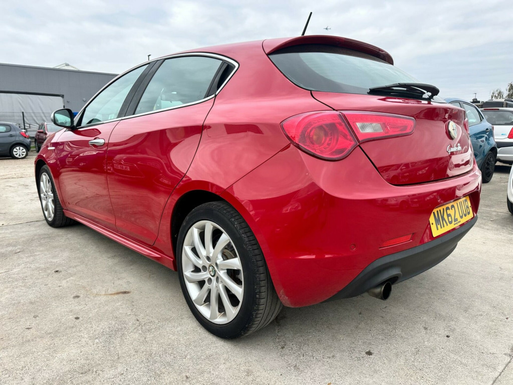 Boasting an MOT valid until June 2026, this 2012 Alfa Romeo Giulietta TB Veloce offers excellent peace of mind. This stylish hatchback features a 1.4 litre petrol engine and has covered a modest 77,000 miles for its age, supported by a partial service history. Notable features include rear parking sensors for easier manoeuvring, a headlight washer system, steering wheel mounted paddles for a more engaging drive, a cooled glove box for keeping drinks or snacks fresh, and electrically folding door mirrors.Experience impressive performance with a 0-62mph acceleration time of just 7.7 seconds, while also benefiting from a remarkable fuel economy of 54 miles per gallon. This Giulietta also offers low CO2 emissions, making it an economical choice. Furthermore, you'll appreciate the generous boot space, perfect for shopping trips or luggage. These highlights demonstrate how this Alfa Romeo Giulietta stands out from other vehicles in its class. in alloy wheels - turbine design, 60-40 split folding rear seats, abs - anti lock braking system, asr - acceleration skid control, airbags - driver, airbags - front side, airbags - passenger, airbags - passenger deactivation, airbags - window, alarm system, armrest - front with storage, bas - brake assistant, blue&me - bluetooth hands free system, chrome effect window sills, climate control - dual zone, cruise control, daytime running lights - led, door mirrors - body coloured, door mirrors - electrically adjustable and heated, door mirrors - satin effect housing, ebd - electronic brakeforce distrubution, eps - electric power assisted steering, electric windows - front and rear, electronic q2 differential, front fog lights, headlights - darkened, headlining - darkened interior, hill holder, isofix attachments for child seat protection, kick plates - aluminium, multifunction display, radio with cd-mp3, rear cluster lights - led, rear spoiler, remote audio controls, remote central locking with electronic key, safe lock, seats - drivers height adjustment, seats - passenger height adjustment, side skirts, space saver spare steel wheel - 17-18in, speakers x6, sports dials with white illumination, sports pedals - aluminium, steering wheel - height and reach adjustment, steering wheel - leather with red stitching, steering wheel - leather-sports, storage - front seat back pockets, suspension - sports, trim inserts - dark brushed aluminium, trip computer, usb and aux, vdc - vehicle dynamic control, voice recognition and media player, parking sensors - rear, steering wheel - paddles, headlights - washer system, door mirrors - electrically folding, cooled glove box, blue&me - tomtom live 2 socket support on dashboard