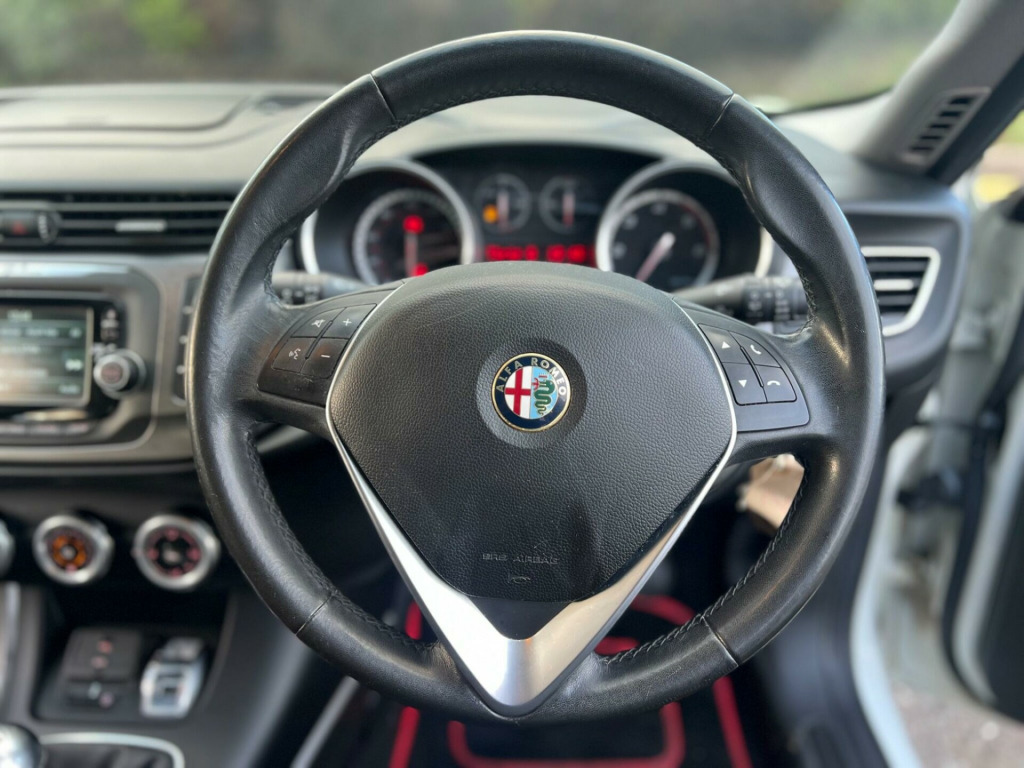 2014 Alfa Romeo Giulietta Progression 1.6 diesel finished in white. Only 59,000 warranted miles on the clock. Comes with a 12 month warranty! MOT til 28th June 2026. Only £20 for yearly road tax! 1 former keeper from new. Service history available; 7 services. Last serviced on 30/04/2025 at 57,950 miles. Car drives well with no mechanical faults. Full V5 available. Comes with a top spec including; alloy wheels, leather steering wheel, multi-functional steering wheel, on-board computer, Radio DAB/FM, electric windows, central locking, AC/Climate control, Bluetooth, TPMS, cup holders and many more. Nationwide Delivery Available. P/X Welcome. HPI Clear. 2 keys. Any questions do not hesitate to contact us on 07443456706 ogression cloth - black-anthracite, 16in alloy wheels - 5 double spoke, 60-40 split folding rear seats, abs - anti lock braking system, aqs - air quality system, asr - acceleration skid control, airbags - driver, airbags - front side, airbags - passenger, airbags - passenger deactivation, airbags - window, bas - brake assistant, bluetooth audio streaming, bluetooth handsfree, bumpers - body colour - front and rear, climate control - manual, cooled glove box, dab radio, daytime running lights - led, door mirrors - body coloured, door mirrors - electrically adjustable and heated, ebd - electronic brakeforce distrubution, eps - electric power assisted steering, electric windows - front and rear, electronic q2 differential, hill holder, isofix attachments for child seat protection, multifunction display, radio with cd-mp3, rear cluster lights - led, rear spoiler, remote audio controls, remote central locking with electronic key, safe lock, seats - drivers height adjustment, smartphone connectivity, space saver spare steel wheel - 16in, speakers x6, sports dials with red illumination, steering wheel - leather with black stitching, tpms - tyre pressure monitoring system, trim inserts - basalt, trip computer, usb and aux, uconnect 5in colour touchscreen infotainment system, vdc - vehicle dynamic control, voice commands and sms reader, voice recognition - navigation