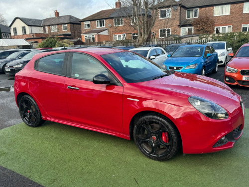Superb Condition | Service HistoryCLICK & COLLECT AVAILABLE – Includes Fresh Service, MOT, and WarrantyFinance Available – Starting from 9.9% APRWe are delighted to offer this fantastic example of this ALFA ROMEO GIULIETTA SPECIALE with black clover alloy wheels.-CAMBELT AND WATER PUMP REPLACED IN 2021 @ 61000 MILES.✅ Full Service History✅ Mechanical Inspection Report Included✅ Minimum 6 Months MOT✅ Warranty Included✅ HPI Clear✅ Fully Valeted✅ Engine & Gearbox Fully Inspected by On-Site MechanicsWhy Buy from Liv Motors?We’re a family-run business with a friendly, experienced team of customer service advisors and qualified mechanics on-site. When you purchase from us, you’re not just buying a car – you’re investing in peace of mind.We Offer:???? Car Finance Options???? Part Exchange Welcome????️ Service Plans Available????️ Comprehensive WarrantyTest Drives Available | Contact Us Anytime with Your Queries – We’re Here 24/7!???? Direct Line: 07837 447 335???? Address: Liv Motors, Poppythorn Lane, Prestwich, Manchester, M25 3BS???? Opening Hours: 9:00 AM – 6:00 PM Daily???? After 6 PM – Appointments Only. 18in Alloy Wheels - 5 Hole Design, 6 Airbags - Driver-Passenger-Front Side and Window, 60-40 Split Folding Rear Seats, Airbags - Passenger Deactivation, Alfa Code Immobiliser and Alarm System, Alfa DNA Driving Mode Selector, Armrest - Front with Storage, Armrest - Rear with Storage, Bluetooth Handsfree, Body Coloured Bumpers, Brembo Braking System with Alfa Romeo Red Brake Callipers, Climate Control - Automatic Dual Zone, Cruise Control, DAB Radio, Dark Anthracite Exterior Finishing, Dark Flair Fire Trim Inserts, Dashboard Surround and Door Panels in Carbon Fibre Finish, Daytime Running Lights - LED, Door Mirrors - Dark Anthracite, Door Mirrors - Electrically Adjustable and Heated, EPS - Electric Power Assisted Steering, Electric Windows - Front and Rear, Electronic Key with Remote Central Locking and Boot Release, Electronic Q2 Differential, Enlarged Exhaust Finish, Flat-Bottomed Sports Leather Steering Wheel with Red Stitching, Floor Mats, Front Fog Lights, Front and Rear Parking Sensors, Headlights - Carbon Effect, Headlining - Darkened Interior, ISOFIX Attachments for Child Seat Protection, Kick Plates - Aluminium, Multifunctional Display and Trip Computer, Parking Sensors - Rear, Privacy Glass, Rear Cluster Lights - LED, Rear Spoiler, Safe Lock, Seats - Drivers Height Adjustment, Seats - Front Electric Lumbar Adjustment, Seats - Passenger Height Adjustment, Side Skirts, Space Saver Spare Steel Wheel - 17-18in, Sports Dials with White Illumination, Sports Front Splitter and Rear DAM with Alfa Red Detailing, Sports Pedals - Aluminium, Storage - Front Seat Back Pockets, Suspension - Sports, TPMS - Tyre Pressure Monitoring System, Uconnect 6.5in Colour Touchscreen Navigation, VDC - Vehicle Dynamic Control, Visibility Pack, Steering Wheel - Paddles, Fabric and Alcantara Sports Seats - Black with Red Stitching.